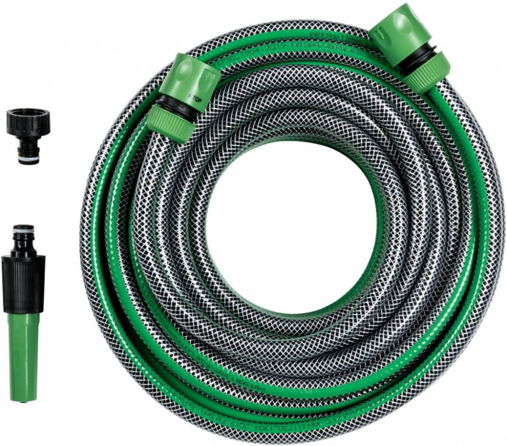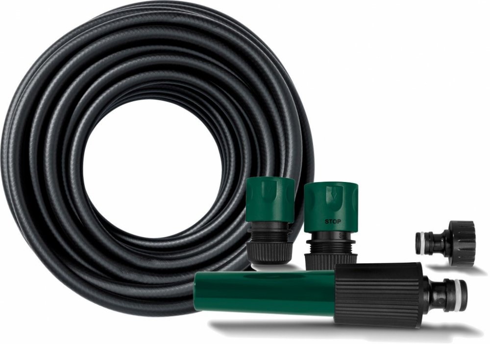 Kompletní sada s hadicí, postřikovačem a spojkami 1 trvale elastická a tvarově stabilní zahradní hadice se zesílenou tkaninou 1 plynule nastavitelný postřikovač 1 hadicová spojka a 1 stopspojka 1 spojka na vodovodní kohoutky se závitem 26,44 m (3/4") Max. provozní tlak: 6 bar Odolná povětrnostním vlivům, UV záření a teplotním výkyvům od –10 do +40 °C Vysoká pevnost v tlaku (průtržný tlak v hadici ...