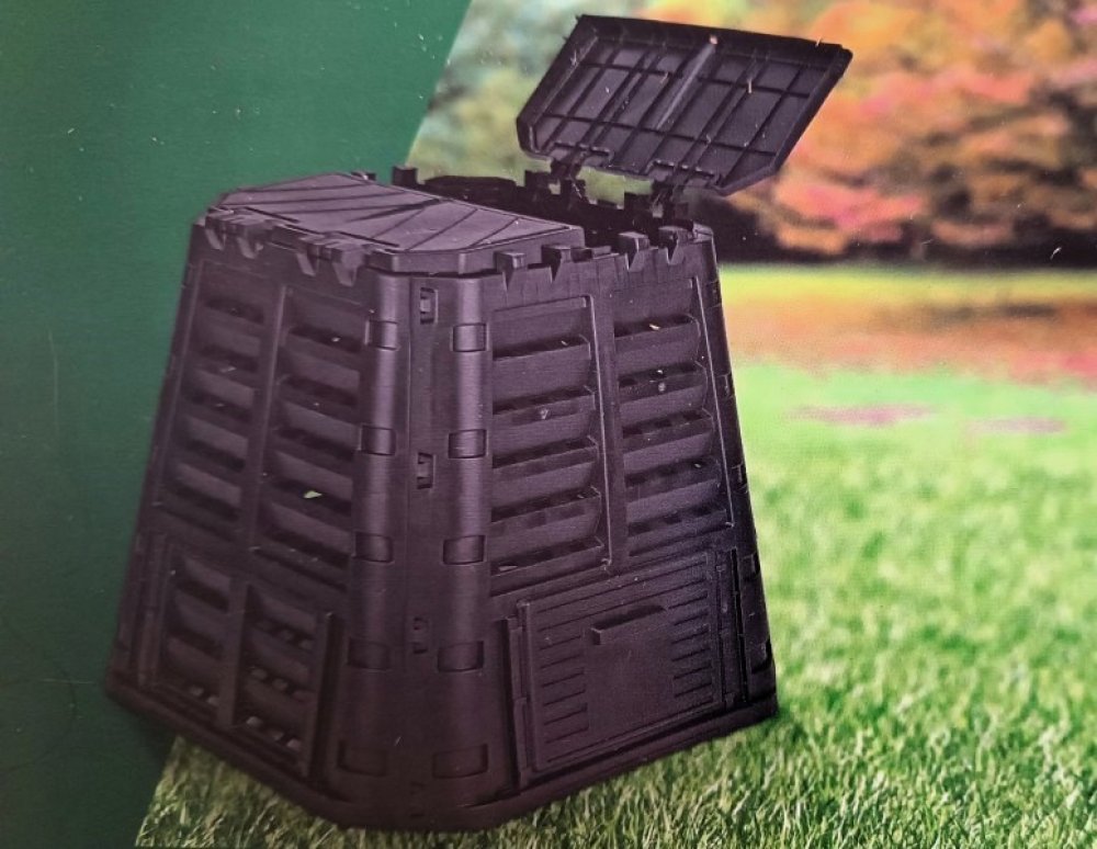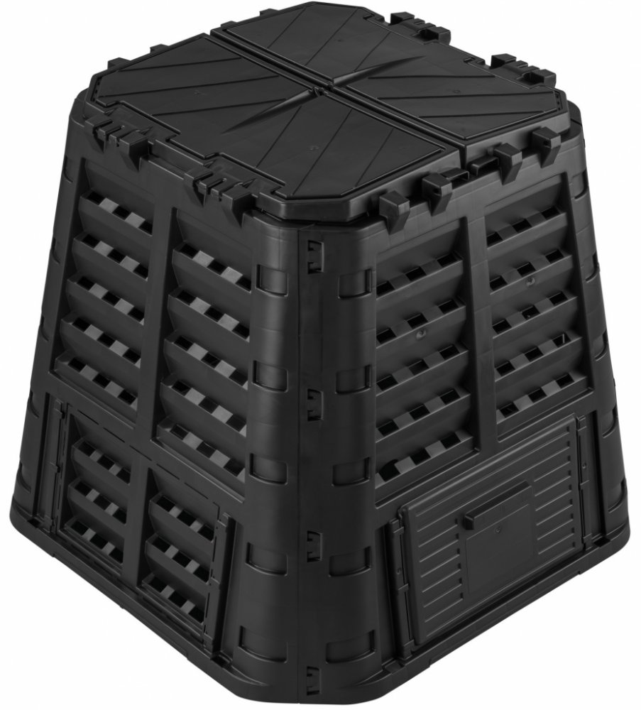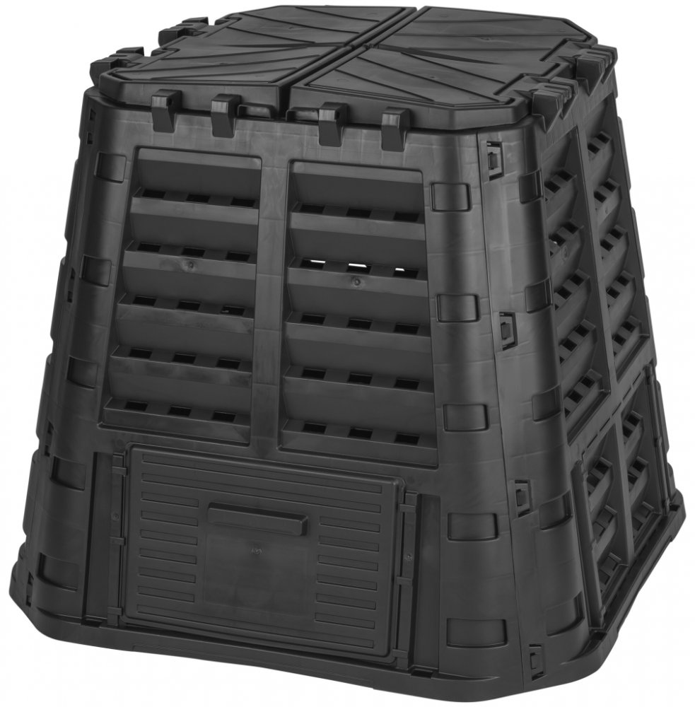 Ekologická tvorba kompostu ze zahradního a kuchyňského odpadu Systém pro kapkovou závlahu – na podporu procesů kompostování Robustní plast odolný vůči povětrnostním vlivům Větrací otvory proti hromadění vody Velké výklopné víko pro snadné plnění 2 klapky pro vyjímání kompostu Snadná, beznástrojová montáž Objem: cca 480 l Rozměry cca 93,3 x 80 x 93,3 cm (Š x V x H)
