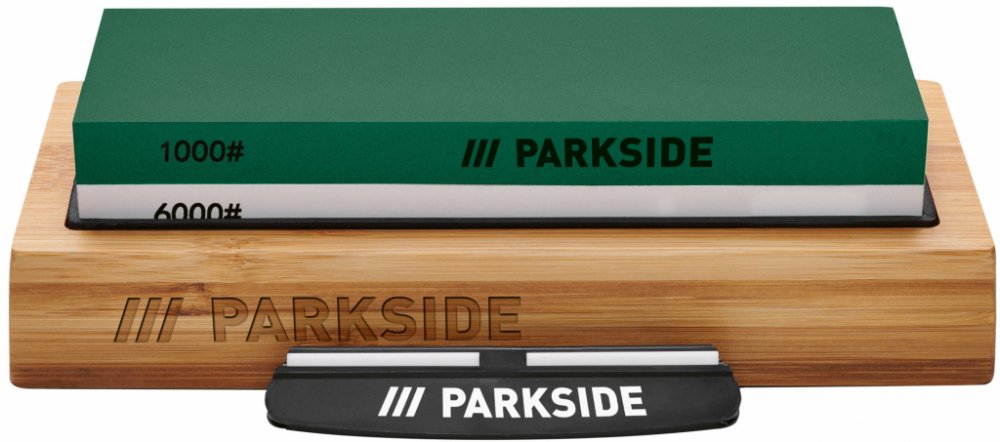 Parkside® Brusný kámen 2 v 1 Vhodný na broušení nožů a nůžek Bambusová základna zajišťuje bezpečnost při broušení Protiskluzová silikonová základna Příslušenství: úhlový pomocník Technické údaje Zrnitost: 1000 / 6000 Zrnitost: 400 / 800 Materiál Korund, bambus (Fsc), silikon Rozměry cca 21 x 9 x 5,7 cm Hmotnost cca 1,1 kg