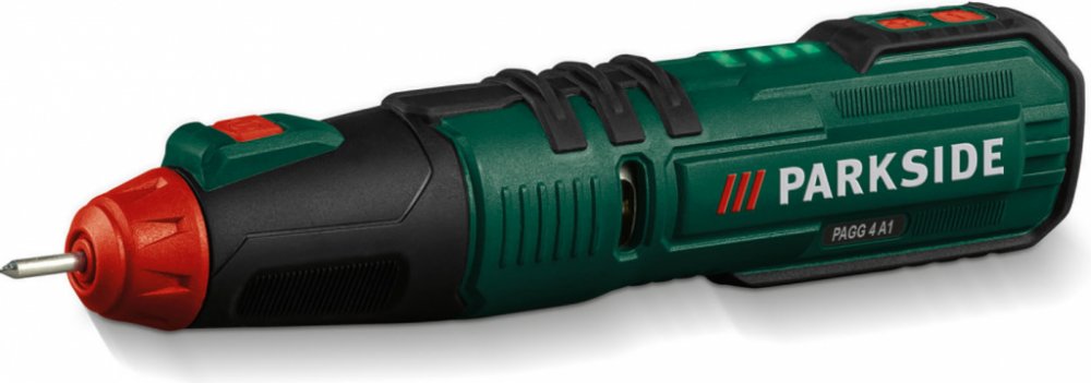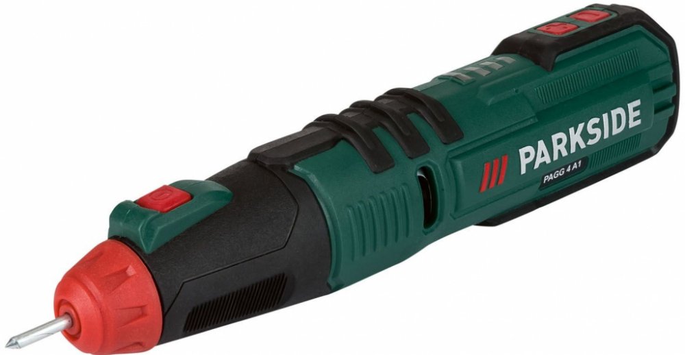 Parkside® Aku gravírovací přístroj Pagg 4 A1, 4V Vhodný pro různé materiály jako kov, kámen; keramika, sklo, dřevo nebo plast Výkonný Li-Ion akumulátor 6násobná nastavitelná úroveň zdvihu Kvalitní gravírovací hrot s dlouhou životností z wolframové oceli Ukazatel počtu zdvihů a stavu nabití akumulátoru Ergonomický tvar s protiskluzovým držadlem Automatické vypnutí při nepoužívání Včetně Usb-C kabel...