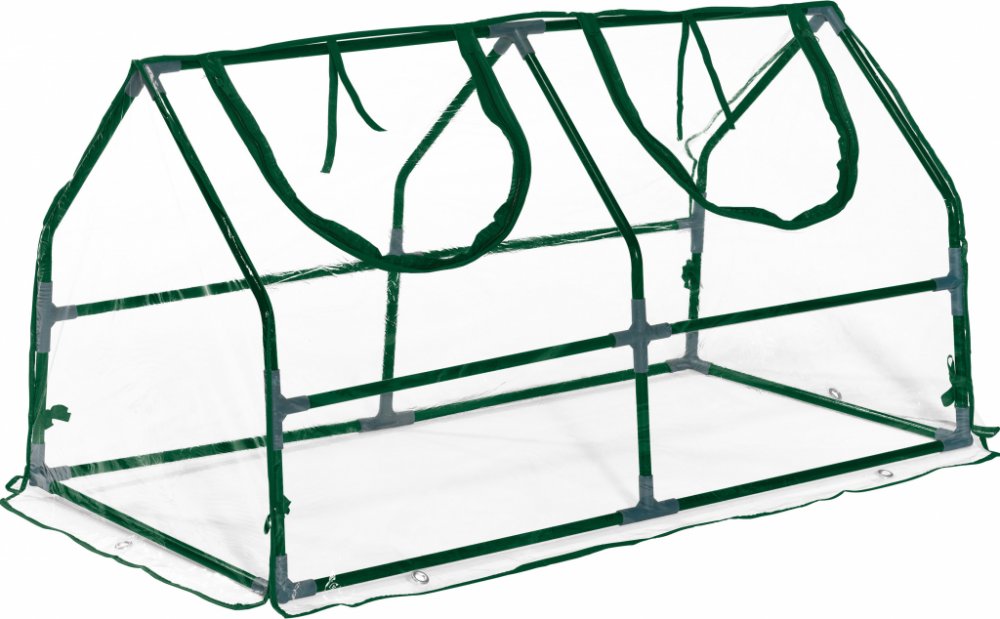 Fóliový kryt na vyvýšený záhon, 120 x 60 x 60 cm Na podporu růstu zeleniny, bylinek nebo sazenic Snadná montáž díky nástrčnému systému s označením písmenky Stabilní konstrukce s rámem ze 16mm kovových trubek Bezpečné ukotvení do země pomocí kolíků Vodotěsná fólie odolná UV záření 2 navíjecí střešní okna na suchý zip se šňůrkou k upevnění Vodotěsný (min. 2 000 mm) Odolný vůči UV záření podle EN 489...