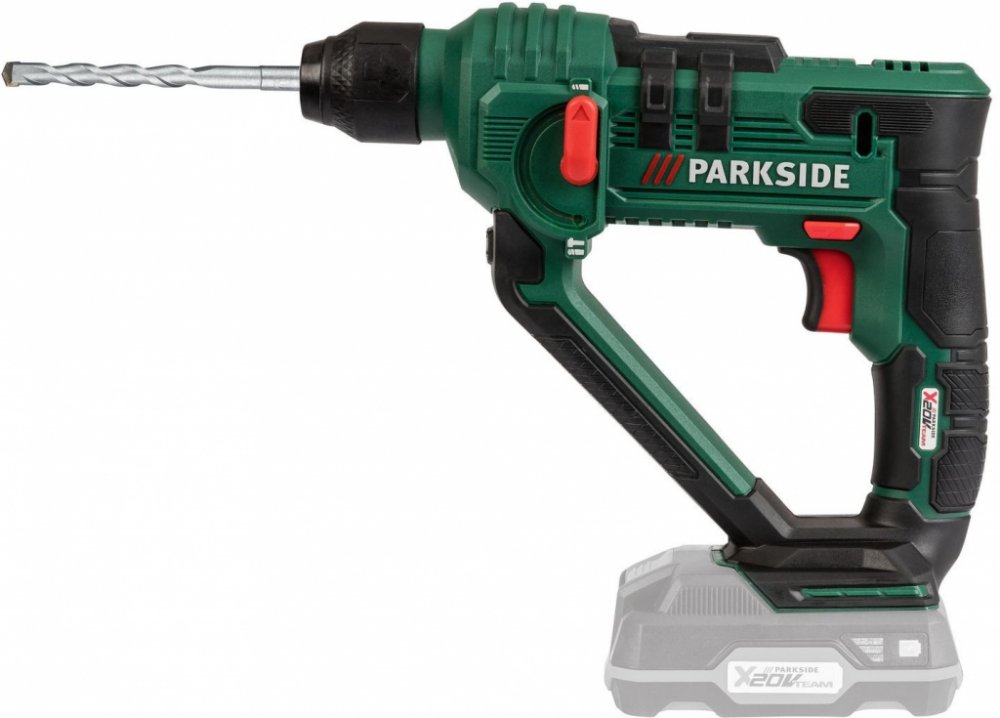 PARKSIDE Aku vrtací kladivo PABH 20-Li B2 – bez akumulátoru a nabíječky Na opracovávání betonu, kamene, kovu a dřeva 2 nastavitelné funkce: příklepové vrtání (s příklepovým mechanismem); šroubování nebo vrtání (bez příklepového mechanismu) Upínací systém SDS plus Plynulá regulace úderů a otáček prostřednictvím spínače Nasaditelné rychloupínací sklíčidlo pro vrtáky s kruhovou stopkou (nevhodné pro příklepové vrtání) Pravý/levý chod Protiskluzové držadlo s měkkým povrchem Integrované LED pracovní světlo Bohaté příslušenství Nářadí kompatibilní se všemi akumulátory série „PARKSIDE X 20 V Team“ Akumulátor a nabíječka nejsou součástí dodávky Technické údaje Síla příklepu: cca 1 J Počet úderů: 0–5 000 min⁻¹ Otáčky naprázdno: 0–900 min⁻¹ Max. průměr vrtání: 10 mm do betonu a kamene / 8 mm do kovu / 16 mm do dřeva Doporučený akumulátor: 20 V (2 Ah) Obsah balení 3 SDS plus vrtáky (6/8/10 x 150 mm) 3 HSS vrtací bity s kruhovou stopkou (5/6/8 mm) 8 šroubovacích bitů (50 mm) Prodloužení bitů 10mm rychloupínací sklíčidlo pro vrtáky s kruhovou stopkou 50 g mazacího tuku Rozměry Přístroj: cca 24,1 x 20,6 x 7,7 cm Kufr: cca 33,9 x 29,7 x 10,7 cm Hmotnost cca 1,3 kg