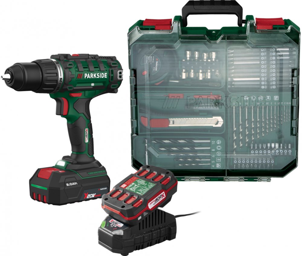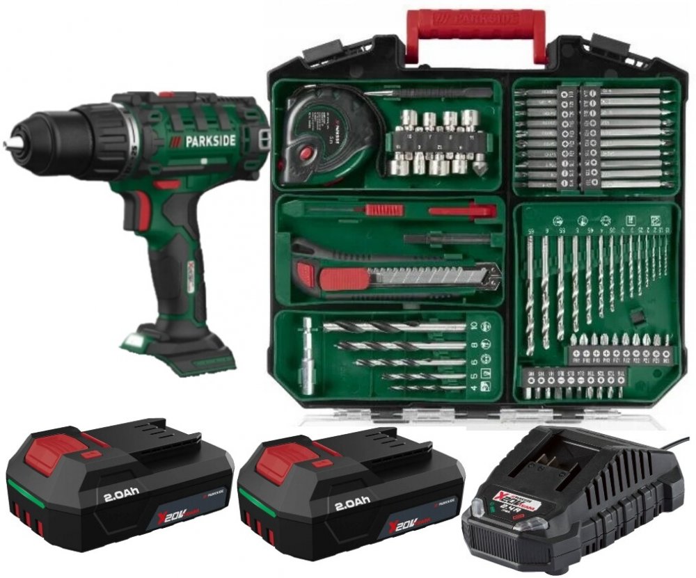 PARKSIDE Aku Vrtačka 20 V série „PABS 20 Li I9“ se dvěma akumulátory, nabíječkou, sadou příslušenství a kufrem