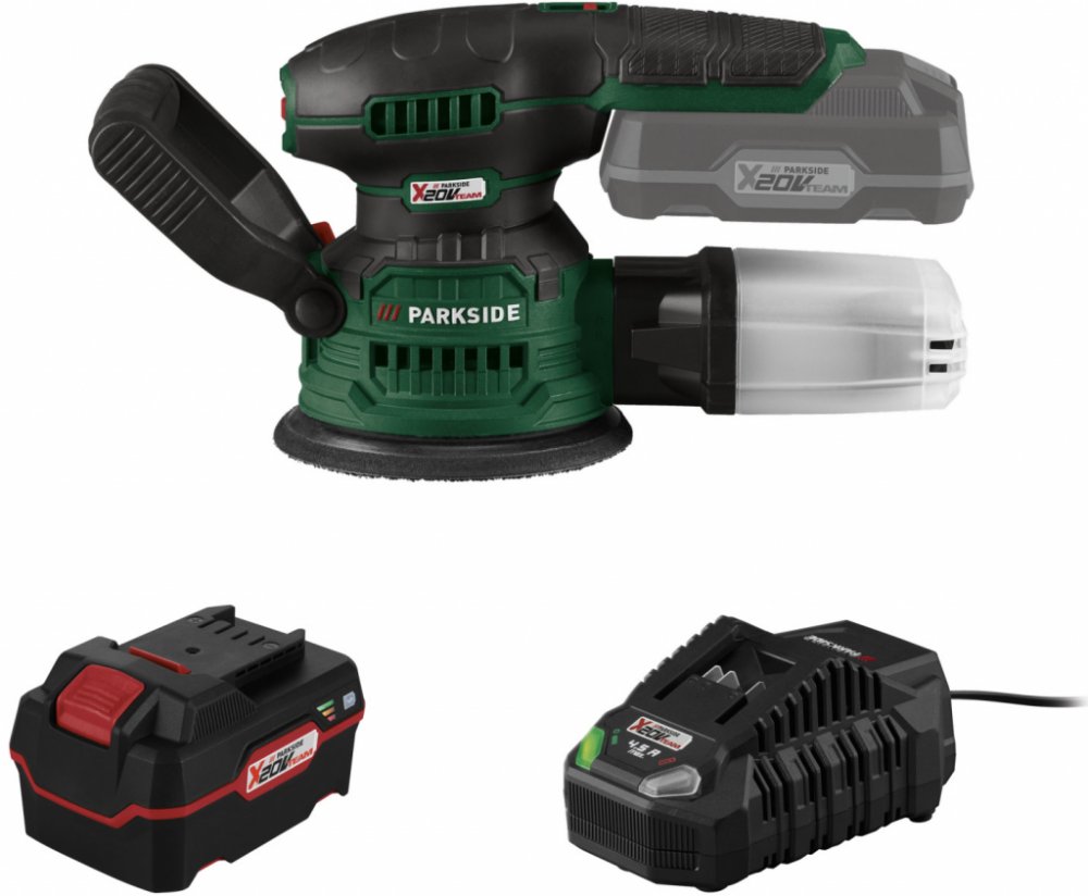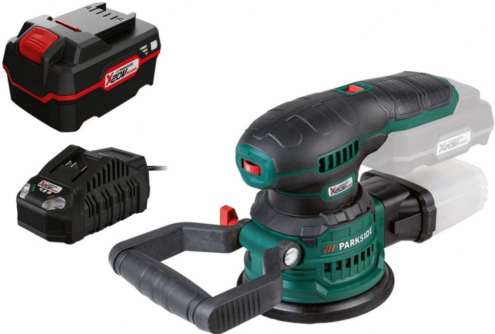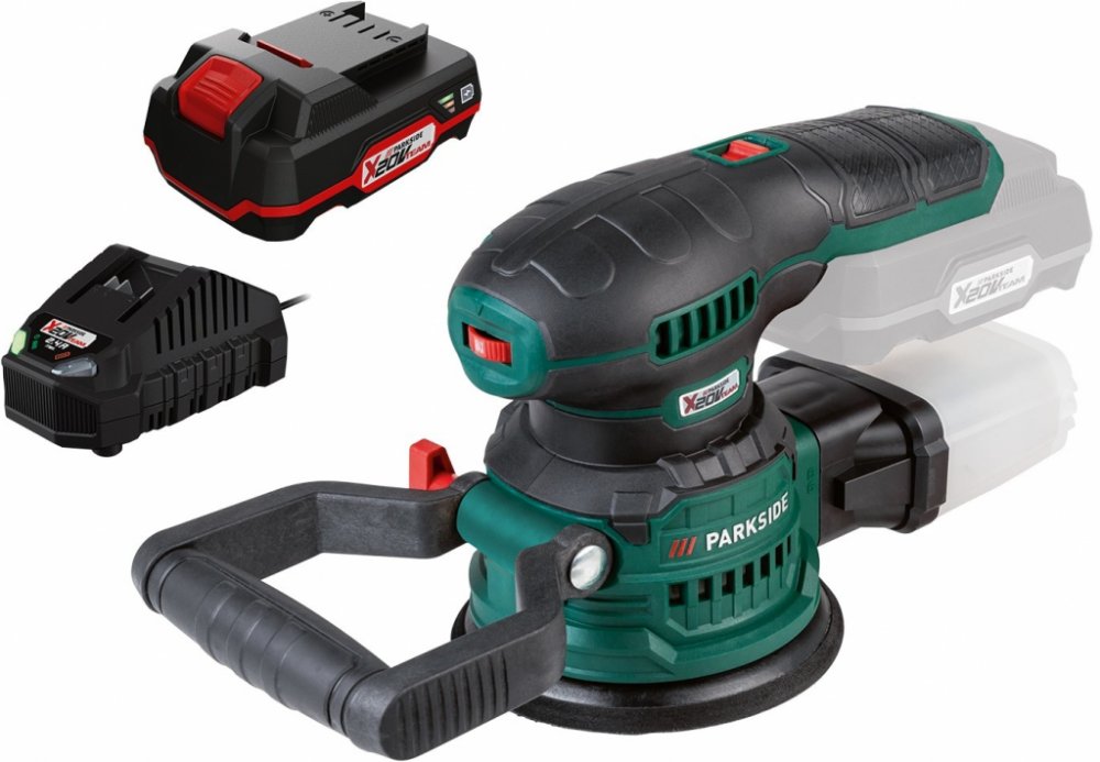 65 W 125 mm 12000 ot/min 2.6 kg Parkside excentrické 20 V akumulátorové na dřevo, plasty a kovy
