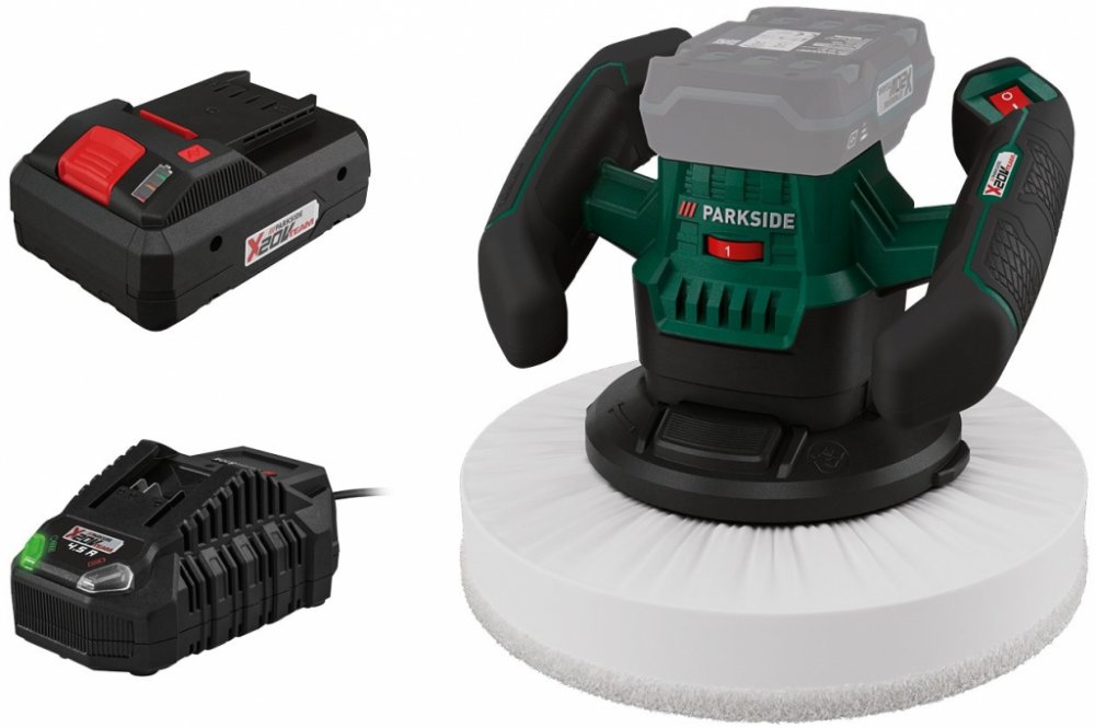 Parkside® Aku leštička Ppma 20-Li B2, Smart 4 Ah Parkside® Aku leštička Ppma 20-Li B2 Na pohodlné voskování a leštění lakovaných povrchů Ideální použití na auto, člun, motorku nebo obytný přívěs 6stupňová regulace otáček Ergonomické obouruční vedení s držadlem s protiskluzovým měkkým povrchem a integrovaným vypínačem Dodané příslušenství: 2 pratelné lešticí návleky (1x froté; 1x syntetický materiál) Výrobek kompatibilní s jakýmkoliv akumulátorem série „Parkside X 20 V Team“ Záruka: 3 roky Technické údaje Otáčky: 0–3 300 min -1 (6stupňové) Lešticí kotouč: Ø cca 250 mm Rozměry cca 25 x 25 x 20 cm Hmotnost cca 1,3 kg (bez příslušenství) Parkside Performance® Smart akumulátor 4 Ah Paps 204 B1 Li-Ion akumulátor v nové; výkonné dimenzi díky chytré technologii akumulátoru a použití článků typu 21700 Data akumulátoru lze vyvolat a výkonnostní parametry lze konfigurovat přes Bluetooth® prostřednictvím aplikace Parkside: Nastavitelné režimy: výkon; vyvážený; ekologický a expert Monitorování akumulátoru – vyvolání dat o stavu nabíjení; zůstávajícím času, době nabíjení; celkové době použití apod. Cell Balancing – delší doba provozu akumulátoru; zvýšená životnost akumulátoru: Delší doba provozu a životnost akumulátoru díky rovnoměrně namáhaným článkům Maximální využití potenciálu nabití Ideální v kombinaci se smart nabíječkou akumulátoru Parkside 20 V / 12 A Plgs 2012 A1 Tento smart akumulátor umožňuje smart funkci u výrobků Parkside Performance s „ready to connect" V porovnání s akumulátorem Parkside 20 V / 2 Ah PAP 20 B1: O 100 % delší doba provozu při stejné velikosti akumulátoru (rozměry) O 70 % vyšší vybíjecí proudy pro větší výkon Ovládání a vyvolání dat prostřednictvím aplikace Parkside Kompaktní konstrukce při vysoké hustotě výkonu díky použití článků typu 21700 Lze ovládat přes Bluetooth® Kompatibilní se všemi výrobky série „X 20 V Team“ Záruka: 3 roky Technické údaje Typ: Li-Ion Jmenovité napětí: 20 V Kapacita: 4 Ah Ukazatel stavu nabití: 3stupňový Monitorování akumulátoru: prostřednictvím aplikace Parkside Rozměry cca 12,3 x 5,2 x 8,4 cm Hmotnost cca 601 g Parkside® Rychlonabíječka PLG 20 C3 Automatické vypnutí nabíjení a LED ukazatelem nabití akumulátoru Protiskluzové gumové nopky Včetně zařízení pro upevnění na stěnu (montážní materiál není součástí balení) Kompatibilní se všemi akumulátory série „X 20V Team“ Záruka: 3 roky Technické údaje Jmenovitý příkon: 120 W Nabíjecí proud: 4,5 A Doba nabíjení (při 20 V / 2 Ah): cca 30 min (připraveno k použití) Doba nabíjení (při 20 V / 4 Ah): cca 60 min Doba nabíjení (při 20 V / 8 Ah): cca 120 min Rozměry cca 15,1 x 9,1 x 7,4 cm Délka síťového kabelu: cca 2 m Hmotnost cca 430 g