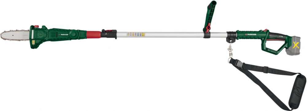 Parkside Aku prořezávač Pahe 20-Li D4 – bez akumulátoru a nabíječky Pro pohodlné řezání až do výšky 4 m bez omezení kabelem Řeže větve až do průměru 20 cm Výkyvná hlava pily pro optimální řezání i na těžko přístupných místech Beznástrojové rychlonapínání řetězu Automatický systém mazání řetězu Nastavitelný ramenní popruh s odpruženou karabinkou Hliníková teleskopická trubka s rozsahem nastavení cca 82 cm a rychlouzávěrem Robustní tělo motoru s okénkem stavu oleje Protiskluzové držadlo s bezpečnostním spínačem Dodané příslušenství: ochranný kryt řetězu, montážní nářadí a 100 ml bio řetězového oleje „Made in Germany“ Přístroj je kompatibilní se všemi akumulátory série „X 20 V Team" Akumulátor a nabíječka nejsou součástí balení Akumulátor včetně nabíječky je dostupný samostatně Technické údaje Rychlost řetězu: max. 5 m/s Celková délka: cca 270 cm Délka řezu: cca 20 cm Rozměry cca 185,6 x 34,1 x 14,9 cm Hmotnost cca 3,35 kg