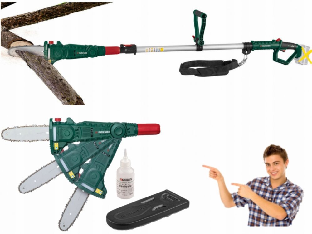 Parkside Aku prořezávač Pahe 20-Li D4 – bez akumulátoru a nabíječky Pro pohodlné řezání až do výšky 4 m bez omezení kabelem Řeže větve až do průměru 20 cm Výkyvná hlava pily pro optimální řezání i na těžko přístupných místech Beznástrojové rychlonapínání řetězu Automatický systém mazání řetězu Nastavitelný ramenní popruh s odpruženou karabinkou Hliníková teleskopická trubka s rozsahem nastavení cc...