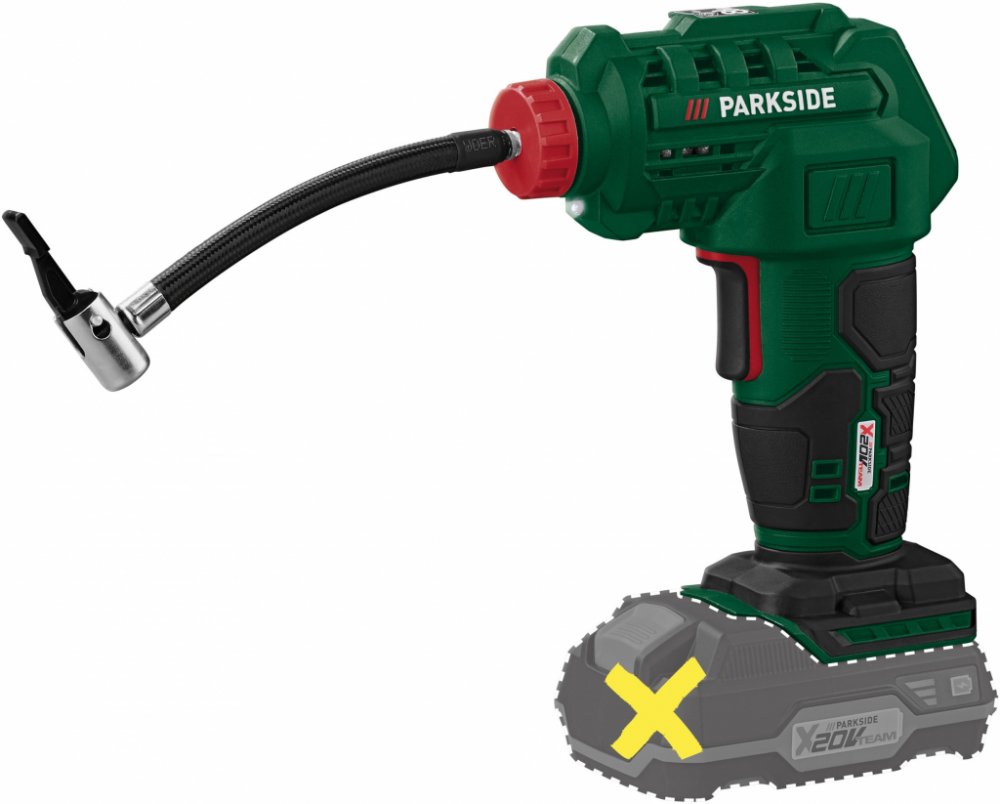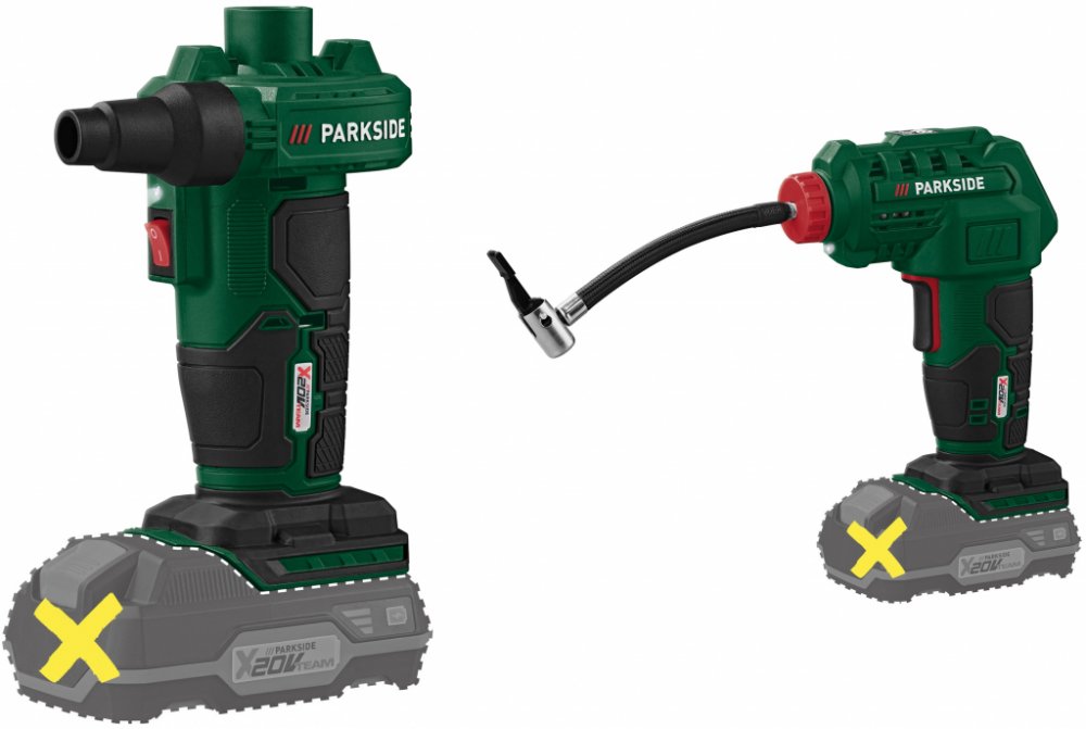 Parkside® Aku kompresor PAK 20-Li B2 / Aku pumpa Palp 20-Li B2 – bez akumulátoru a nabíječky Aku pumpa Palp 20-Li B2 Pro rychlé huštění při vysoké potřebě objemu vzduchu Ideální pro nafukovací matrace, nafukovací čluny nebo nafukovací plážové předměty Kompaktní tělo s pogumovaným držadlem a LED pracovním světlem Vhodná také k vypouštění vzduchu Praktický kufřík na uložení Dodané příslušenství: 3 univerzální ventilové adaptéry Kompatibilní se všemi akumulátory série „X 20 V Team“ Doporučený akumulátor: 20 V (2 Ah) Akumulátor a nabíječka nejsou součástí balení Aku kompresor PAK 20-Li B2 Pro výkonné huštění při vyšší potřebě stlačeného vzduchu Ideální pro duše jízdních kol, jakož i nafukovací hračkářské nebo sportovní předměty Přednastavení tlaku s automatickým vypnutím LCD displej s manometrem v bar nebo PSI Kompaktní tělo s pogumovaným držadlem, LED pracovním světlem a držákem na příslušenství Praktický kufřík na uložení Kompatibilní se všemi akumulátory série „X 20 V Team“ Doporučený akumulátor: 20 V (2 Ah) Akumulátor a nabíječka nejsou součástí balení Dodané příslušenství: 1 hadicová spojka s ventilovým adaptérem jako svorka, 2 hadicové ventily, 1 míčový ventilek, 3 univerzální ventilové adaptéry Technické údaje Aku pumpa Palp 20-Li B2 Rychlost proudění vzduchu: 70 m³/h Aku kompresor PAK 20-Li B2 Max. pracovní tlak: 7 bar Rozměry Aku pumpa Palp 20-Li B2: 18,1 x 14,8 x 7 cm Aku kompresor PAK 20-Li B2: cca 19,5 x 14,8 x 7 cm Hmotnost Aku pumpa Palp 20-Li B2: cca 435 g Aku kompresor PAK 20-Li B2: cca 581 g