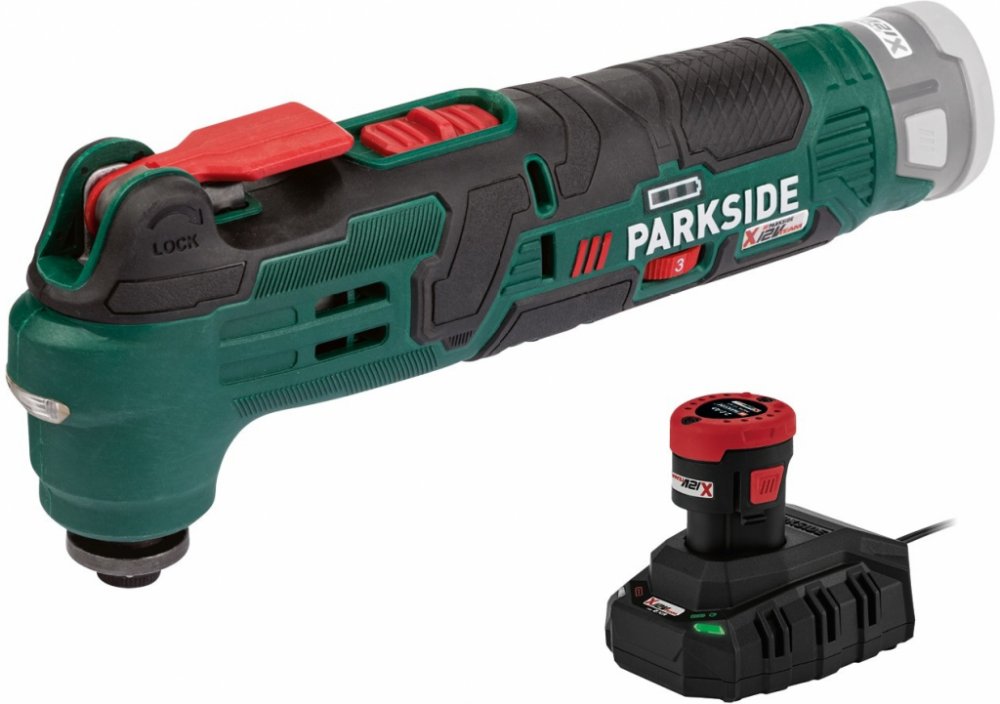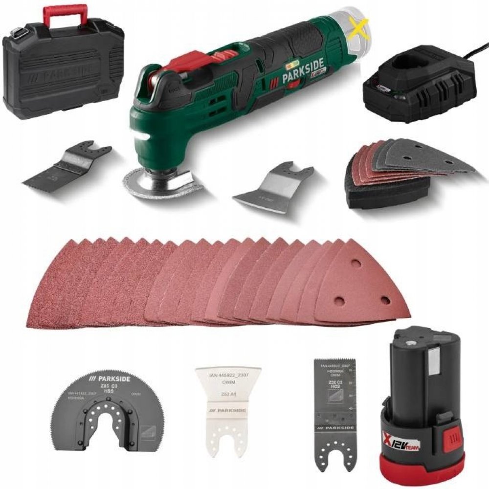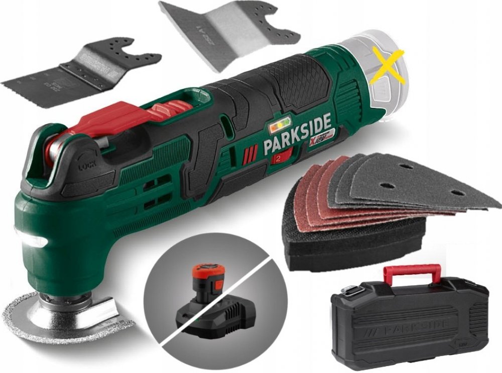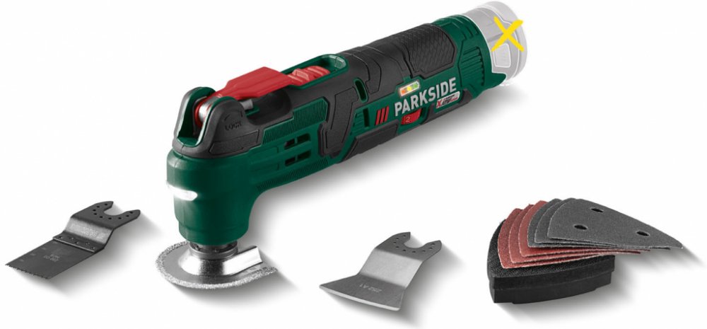 50 W 0.795 kg Parkside multifunkční 12 V akumulátorové pro obecnou přípravu povrchu pro mobilní úlohy upínací kleštiny 255 × 56 × 103 mm s nízkými vibracemi a hlučností
