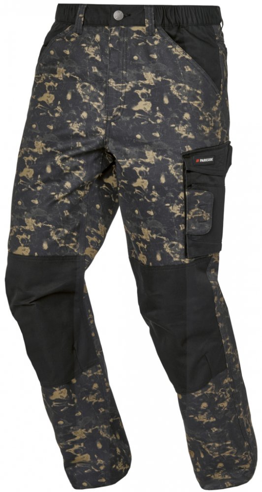 PARKSIDE Pánské pracovní kalhoty Podporujeme udržitelné pěstování bavlny v Africe Příjemné na nošení díky vysokému obsahu bavlny Pohodlný, částečně elastický pas pro optimální volnost při pohybu Praktické kapsy na nářadí nebo mobil Kvalitní značkový zip YKK Normální výška sedu Materiál 65 % polyester, 35 % bavlna Velikost 46–58