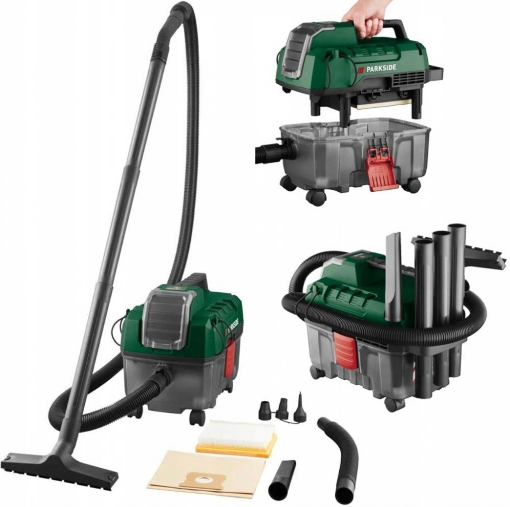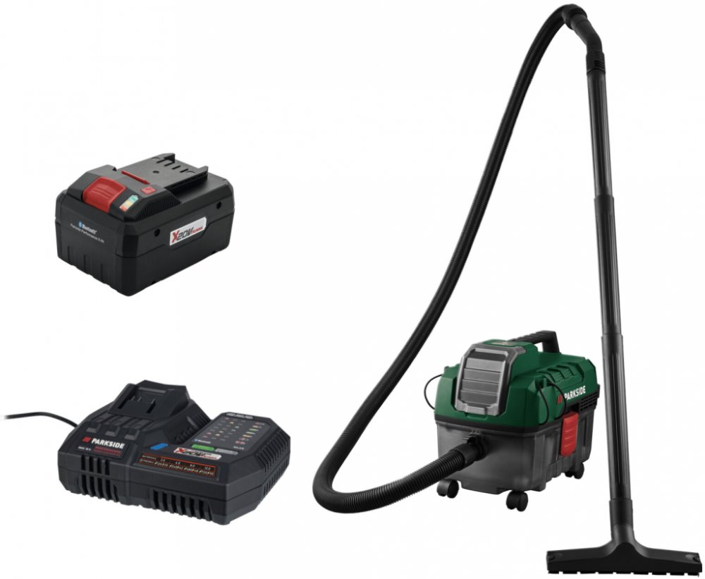 Parkside® Aku vysavač na mokré a suché vysávání Pawd 20-Li A1, Smart 8 Ah Parkside® Aku vysavač na mokré a suché vysávání Pawd 20-Li A1 Vlastnosti Multifunkční; bezkabelový vysavač – bez námahy odtraňuje mokré a suché nečistoty Sací výkon 60 airwattů pro domácnost; dílnu nebo garáž Lze použít také jako foukač Přepínání mezi výkonovým a úsporným režimem pro vysoký výkon nebo prodloužení doby provoz...