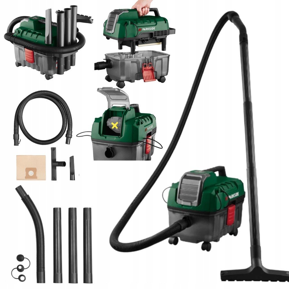 Parkside® Aku vysavač na mokré a suché vysávání Pawd 20-Li A1 – bez akumulátoru a nabíječky Vlastnosti Multifunkční; bezkabelový vysavač – bez námahy odtraňuje mokré a suché nečistoty Sací výkon 60 airwattů pro domácnost; dílnu nebo garáž Lze použít také jako foukač Přepínání mezi výkonovým a úsporným režimem pro vysoký výkon nebo prodloužení doby provozu 8litrová nádoba s rychloupínacími uzávěry pro snadné vyprázdnění Zabudované držáky na hubice a trubky Pohodlné přenášení díky ergonomickému držadlu Stabilní poloha a snadné ovládání díky 4 kolečkům Včetně praktických gumiček pro upevnění sací hadice k výrobku Prachová třída L účinnost zachycení > 99 % Kompatibilní se všemi akumulátory série Parkside X 20 V Team kromě 12 Ah akumulátoru Doporučený akumulátor: 20 V 4 Ah Záruka: 3 roky Charakteristika produktu tabletd Typ provozu: akumulátor Příkon: - Sací výkon: 60 airwattů Objem vzduchu: - Objem nádoby: 8 l Délka sací hadice: 2 m Vnější průměr sací hadice: 35 mm Délka kabelu: - Materiál pouzdra: plast Materiál nádoby: plast Příslušenství: sací hadice, 1x prvek držadla s regulátorem vzduchu, 3 sací trubky, 3dílná sada nástavců pro použití jako foukač, 1 štěrbinová hubice, 1 podlahová hubice suché vysávání; 1 papírový filtrační sáček suché vysávání; 1 plochý skládaný filtr mokré/suché vysávání; předmontován Rozměry: cca 35,0 x 25,0 x 24,0 cm D x Š x V Hmotnost: cca 3,6 kg