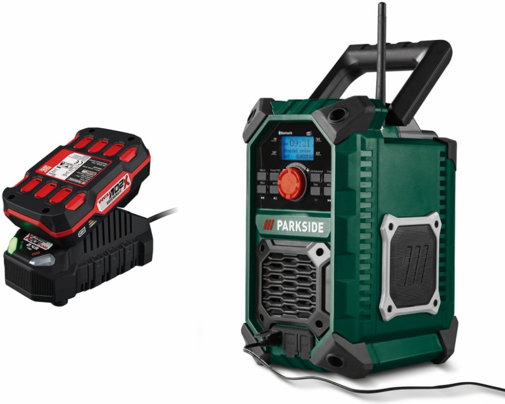 PARKSIDE® Aku stavební rádio PBRA 20-Li A1, 2 Ah Kompatibilní se všemi přístroji série „PARKSIDE X 20 V Team“ Sada se skládá z aku stavebního rádia PBRA 20-Li A1, akumulátoru 2 Ah PAP 20 B1 a nabíječky PLG 20 C1 Aku stavební rádio PBRA 20-Li A1 Ideální společník na stavbách, při kempování nebo v zahradě VKV stereo rádio pro příjem DAB, DAB+ a FM Možný také bezkabelový přenos hudby prostřednictví...