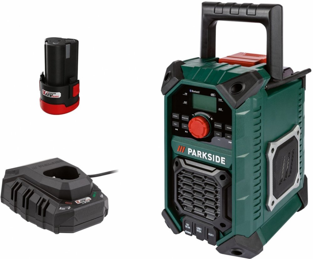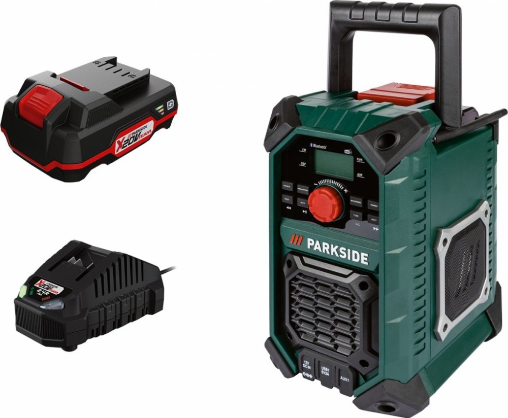 PARKSIDE® Aku stavební rádio PBRA 20-Li A1, 2 Ah Kompatibilní se všemi přístroji série „PARKSIDE X 20 V Team“ Sada se skládá z aku stavebního rádia PBRA 20-Li A1, akumulátoru 2 Ah PAP 20 B1 a nabíječky PLG 20 C1 Aku stavební rádio PBRA 20-Li A1 Ideální společník na stavbách, při kempování nebo v zahradě VKV stereo rádio pro příjem DAB, DAB+ a FM Možný také bezkabelový přenos hudby prostřednictvím Bluetooth® Kvalitní reproduktory s jasným a příjemným zvukem Automatické vyhledávání stanic a 30 paměťových míst Velký LCD displej s podsvícením pozadí a ukazatelem stavu nabití akumulátoru 2 USB výstupy k nabíjení např. mobilu nebo tabletu Přehrávání MP3 hudby je možné také prostřednictvím 2 AUX výstupů Ukazatel data a času Robustní tělo s pogumovanými hranami a držadlem Provoz možný prostřednictvím napájecího adaptéru nebo akumulátoru Výrobek kompatibilní se všemi akumulátory série „PARKSIDE X 20 V Team“ a „PARKSIDE X 12 V Team“ nebo provoz přes elektrickou zásuvku prostřednictvím napájecího adaptéru Záruka: 3 roky Akumulátor 2 Ah PAP 20 B1 Výkonný Li-Ion akumulátor s 3stupňovým indikátorem stavu nabití Cell Balancing – delší provozní doba a zvýšená životnost akumulátoru Vyšší výkon díky rovnoměrně využitým článkům Maximalizuje nabíjecí potenciál Záruka: 3 roky Nabíječka PLG 20 C1 Nabíječka s LED ukazatelem nabití a automatickým vypnutím nabíjení Protiskluzové gumové nožičky u nabíječky Možnost upevnění nabíječky na stěnu Záruka: 3 roky Technické údaje Aku stavební rádio PBRA 20-Li A1 Možnosti příjmu: DAB / DAB+ / FM Provozní doba při provozu na akumulátor: 12 V (2 Ah) cca 5 hod. / 12 V (4 Ah) cca 10 hod. / 20 V (2 Ah) cca 5 hod. / 20 V (4 Ah) cca 10 hod. Výkon reproduktoru: 2 x 5 W Bluetooth®: max. 10 m dosah USB vstupní a výstupní napětí: 5 V / 2 A Akumulátor 2 Ah PAP 20 B1 Typ: lithium-iontový Jmenovité napětí: max. 20 V Kapacita: 2 Ah Nabíječka PLG 20 C1 Příkon: 65 W Proud: 2,4 A Doba nabíjení: cca 60 min (při 20 V / 2 Ah) Délka kabelu: cca 1,5 m Rozměry Aku stavební rádio PBRA 20-Li A1: cca 22,4 x 17 x 40,7 cm Akumulátor 2 Ah PAP 20 B1: cca 12,7 x 5,2 x 8,4 cm Nabíječka PLG 20 C1: cca 14 x 9,1 x 6,7 cm Hmotnost Aku stavební rádio PBRA 20-Li A1: cca 2,57 kg Akumulátor 2 Ah PAP 20 B1: cca 440 g Nabíječka PLG 20 C1: cca 355 g