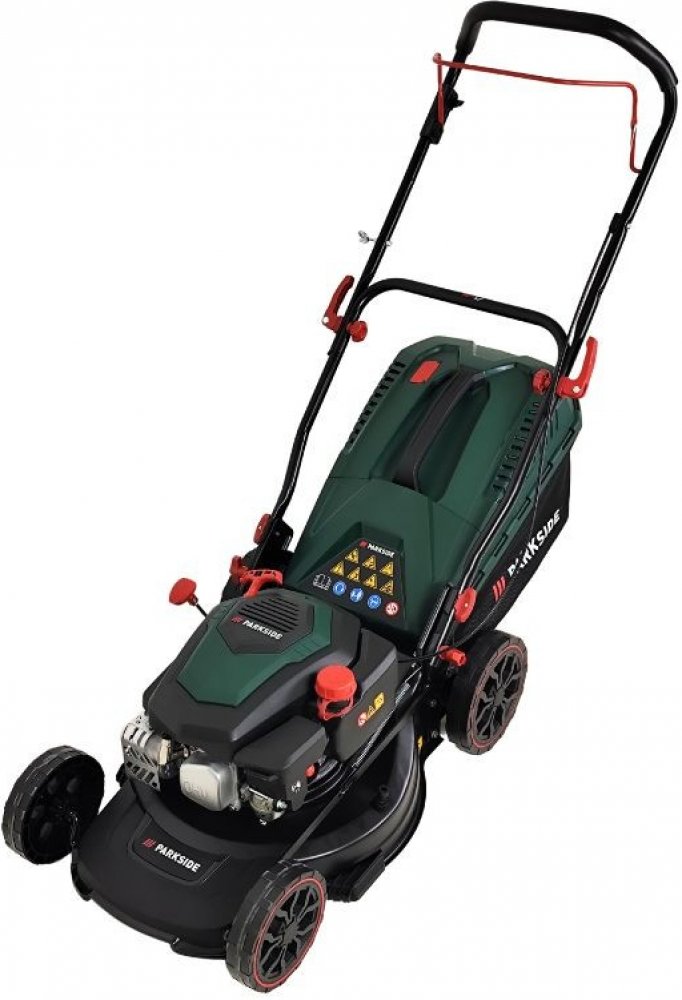 Tělo sekačky je vyrobeno z odolného ocelového plechu s práškovou vrstvou, která zajišťuje dlouhou životnost a odolnost proti povětrnostním vlivům. Sekačka je vybavena 45litrovou záchytnou nádobou s ukazatelem stavu naplnění a praktickým držadlem pro snadnou manipulaci. Navíc je vodicí držadlo výškově nastavitelné a výklopné, což usnadňuje skladování a šetří místo.