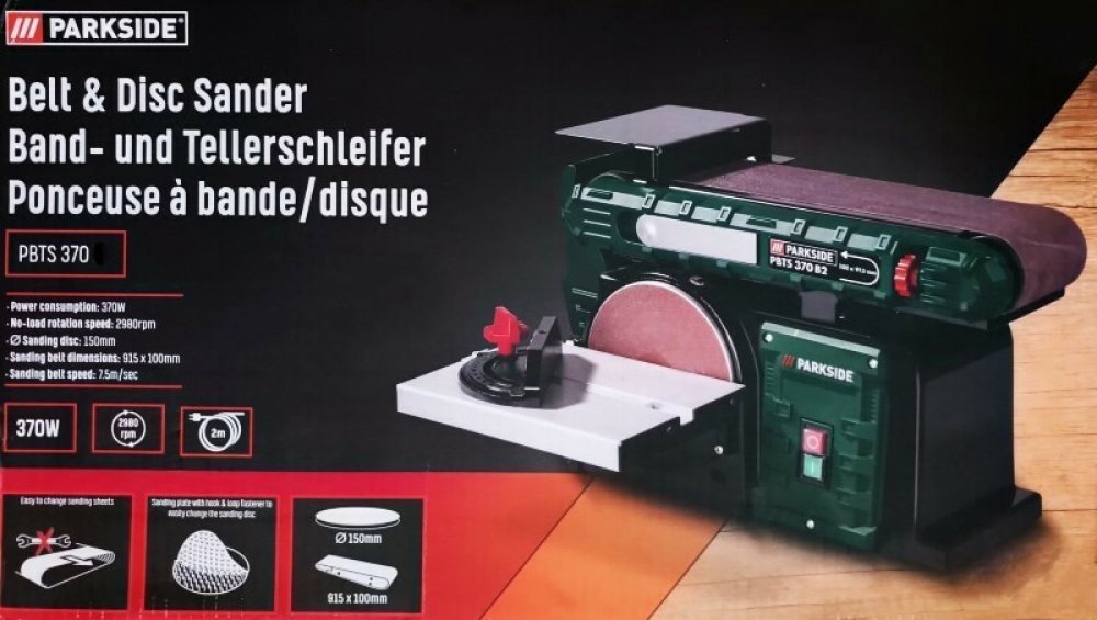 Stolní pásová a talířová bruska PARKSIDE PBTS 370 B3, výkon 370 W