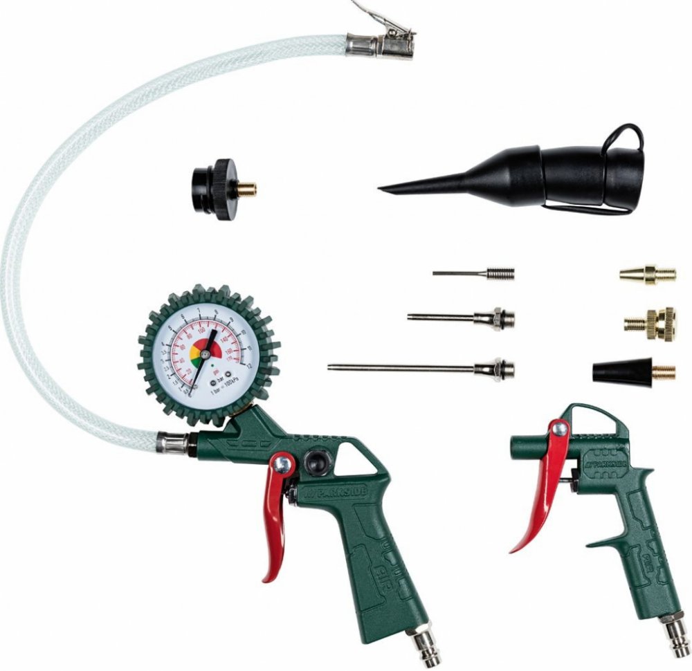 PARKSIDE Sada pneumatického příslušenství PDSS 13 D4 Univerzálně použitelné na kola, nafukovací matrace, míče atd. Vyfukovací pistole včetně 2 prodlužovacích trysek Odvzdušňovací pistole s odvzdušňovacím ventilem a manometrem Hadice s ventilovou zástrčkou a různými adaptéry Vhodné pro všechny běžné kompresory (např. od Parkside) Obsah balení: 1x ofukovací pistole a 2 trysky 1x nafukovací pistole s...