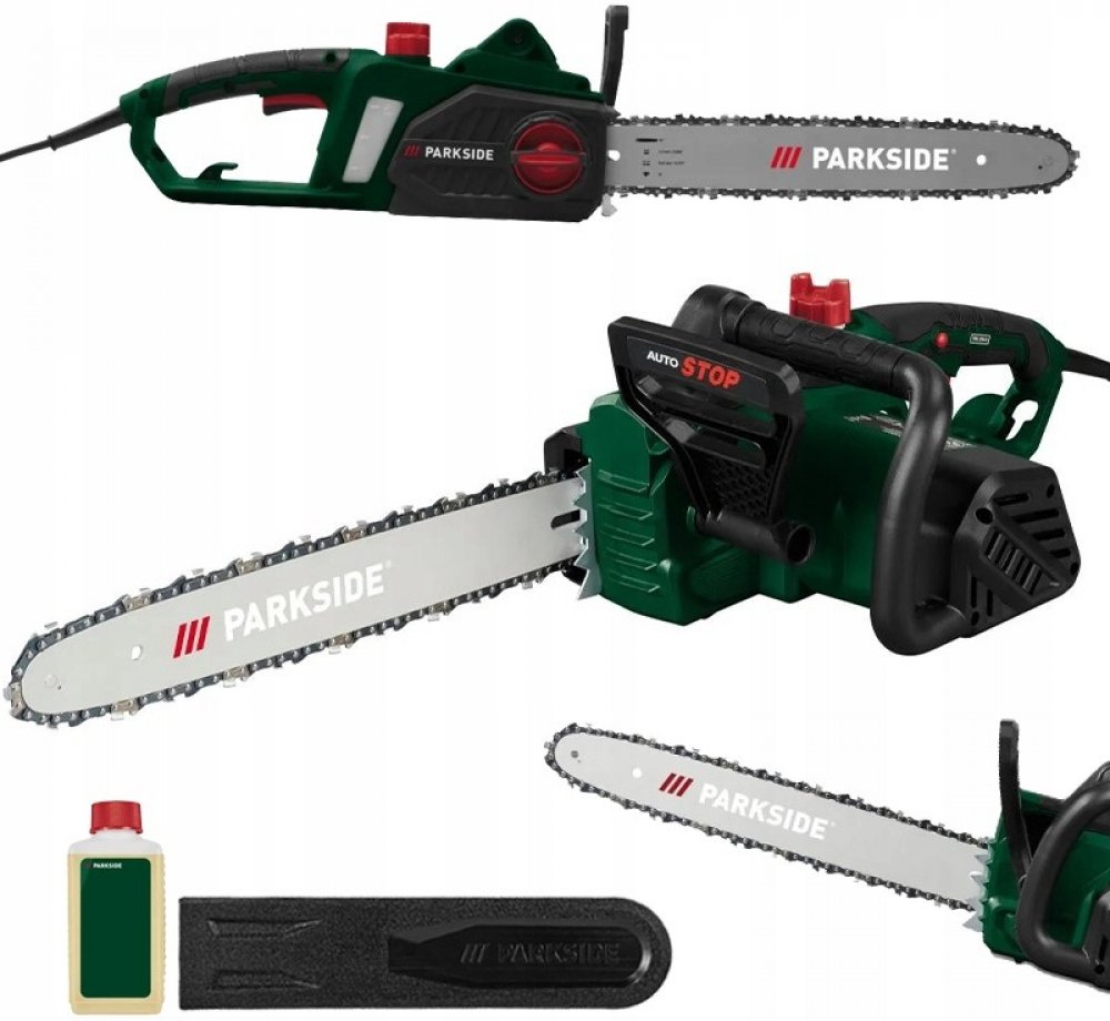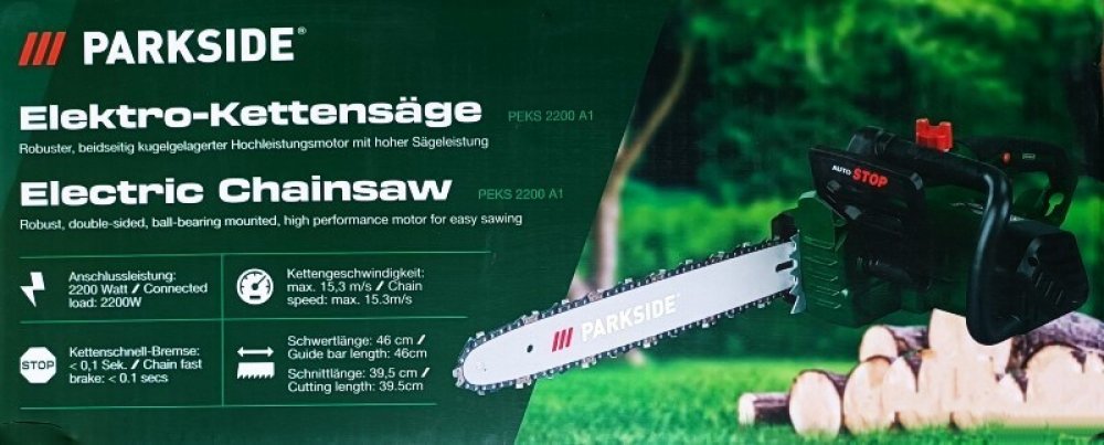 Parkside 46 cm 5.2 kg 2200 W elektrické 395 mm 2200 W 15.3 m/s 3/8″ pro silná polena (nad 35 cm) vhodné pro delší směny středně těžké (4-6 kg) se středně těžkou údržbou