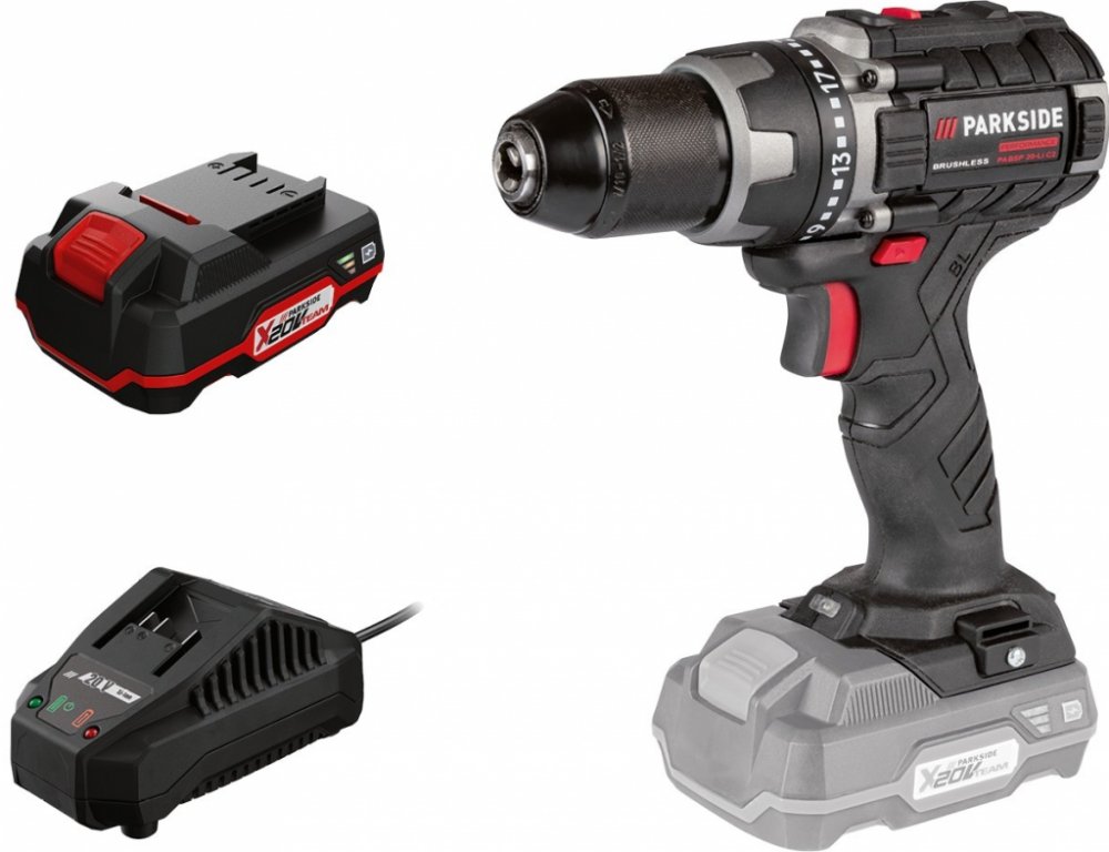 Sada se skládá z aku vrtacího šroubováku PABSP 20-Li C2, akumulátoru 2 Ah PAP 20 A1 a rychlonabíječky PLG 20 A1 Kompatibilní se všemi přístroji série "Parkside X 20 V Team" Aku vrtací šroubovák PABSP 20-Li C2 Bezuhlíkový motor – mimořádně vysoká životnost díky nízkému opotřebení Dvoustupňová převodovka s plynule nastavitelnými otáčkami a rychlým zastavením Automatická aretace vřetena SPINDLE LOCK 21 předvolitelných stupňů točivého momentu a dodatečné nastavení vrtání Integrované LED osvětlení obrobku Praktický klip na opasek V robustním kufříku Sklíčidlo Röhm z kovu a s radiálním zajištěním Porovnání s aku vrtacím šroubovákem Parkside PABS 20-Li D4 až o 50 % vyšší točivý moment až 10x delší životnost motoru Akumulátor 2 Ah PAP 20 A1 + rychlonabíječka PLG 20 A1 Výkonný Li-Ion akumulátor s 3stupňovým ukazatelem nabití Včetně 60minutové rychlonabíječky s automatickým vypnutím Technické údaje Aku vrtací šroubovák PABSP 20-Li C2 Točivý moment: až 60 Nm Jmenovité otáčky: 1. stupeň 0–500 min-1; 2. stupeň 0–2 000 min-1 Předvolba: 21 stupňů točivého momentu + stupeň vrtání Kapacita sklíčidla: 1,5–13 mm Max. průměr vrtání: 38 mm do dřeva, 13 mm do oceli Akumulátor 2 Ah PAP 20 A1 + rychlonabíječka PLG 20 A1 Akumulátor 2 Ah PAP 20 A1: Typ: Li-Ion Jmenovité napětí: 20 V Kapacita: 2 Ah Rychlonabíječka PLG 20 A1: Jmenovitý příkon: 65 W Jmenovitý proud: 2,4 A Rozměry Aku vrtací šroubovák PABSP 20-Li C2 cca 19 x 19,5 x 7,6 cm Akumulátor 2 Ah PAP 20 A1 + rychlonabíječka PLG 20 A1 Akumulátor: cca 12,7 x 5,2 x 8,4 cm Rychlonabíječka: cca 14 x 8,4 x 6,8 cm Hmotnost Aku vrtací šroubovák PABSP 20-Li C2 cca 1,1 kg Akumulátor 2 Ah PAP 20 A1 + rychlonabíječka PLG 20 A1 Akumulátor: cca 440 g Rychlonabíječka: cca 315 g