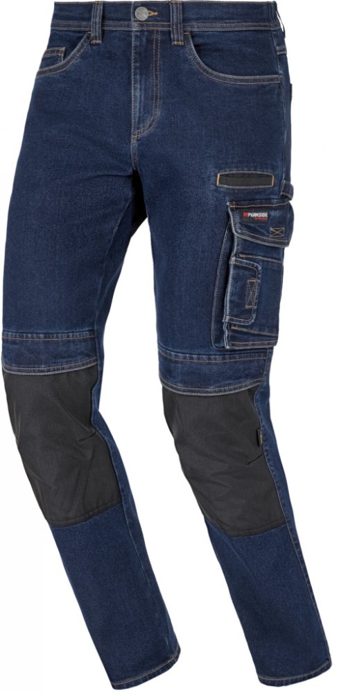 Parkside Performance® Pánské džínové pracovní kalhoty Vlastnosti Podporujeme udržitelné pěstování bavlny v Africe Příjemné na nošení díky vysokému podílu bavlny Zesílení na kolenou z materiálu Cordura® Oblast kolen minimálně 10x odolnější ve srovnání s pracovními kalhotami Parkside bez materiálu Cordura® Lze použít kolenní chrániče nejsou součástí balení Pohodlný; částečně elastický pas pro optimá...