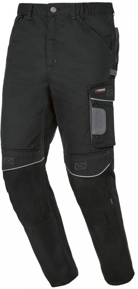 Parkside Performance® Pánské pracovní kalhoty Vlastnosti Vyrobené z recyklovaného materiálu Podíl bavlny Zesílení na kolenou z materiálu Cordura® Oblast kolen minimálně 10x odolnější ve srovnání s pracovními kalhotami Parkside bez materiálu Cordura® Vodoodpudivý vrchní materiál díky provedení Bionic Finish® ECO Pohodlný. částečně elastický pas pro optimální volnost při pohybu Odrazové dekorativní ...