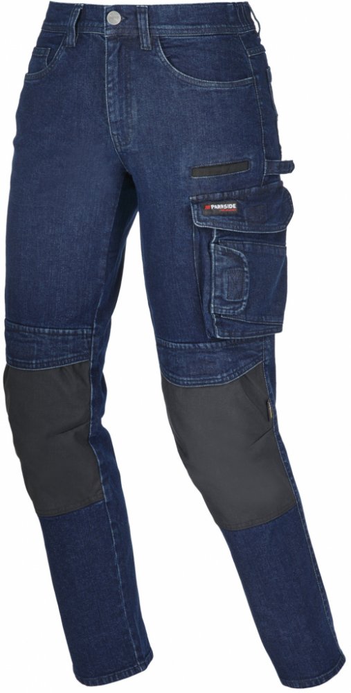 Parkside Pánské pracovní kalhoty Podporujeme udržitelné pěstování bavlny v Africe Elastický pas pro maximální svobodu v pohybu Ekologická impregnace Vodoodpudivý vrchní materiál díky povrchové úpravě Bionic-Finish® ECO Plus Zesílení na kolenou z materiálu Cordura® Reflexní prvky Praktické kapsy na nářadí; mobil a pravítko Materiál 65 % polyester, 35 % bavlna Velikost 48–58