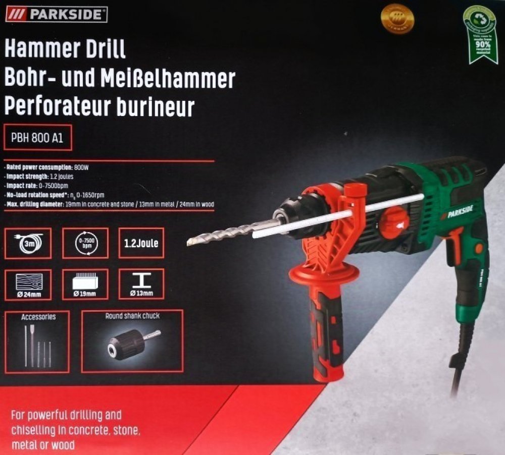 Parkside vrtací SDS-Plus 2.59 kg 800 W 800 W 1.2 J 6 600 ú/min 1650 ot./min