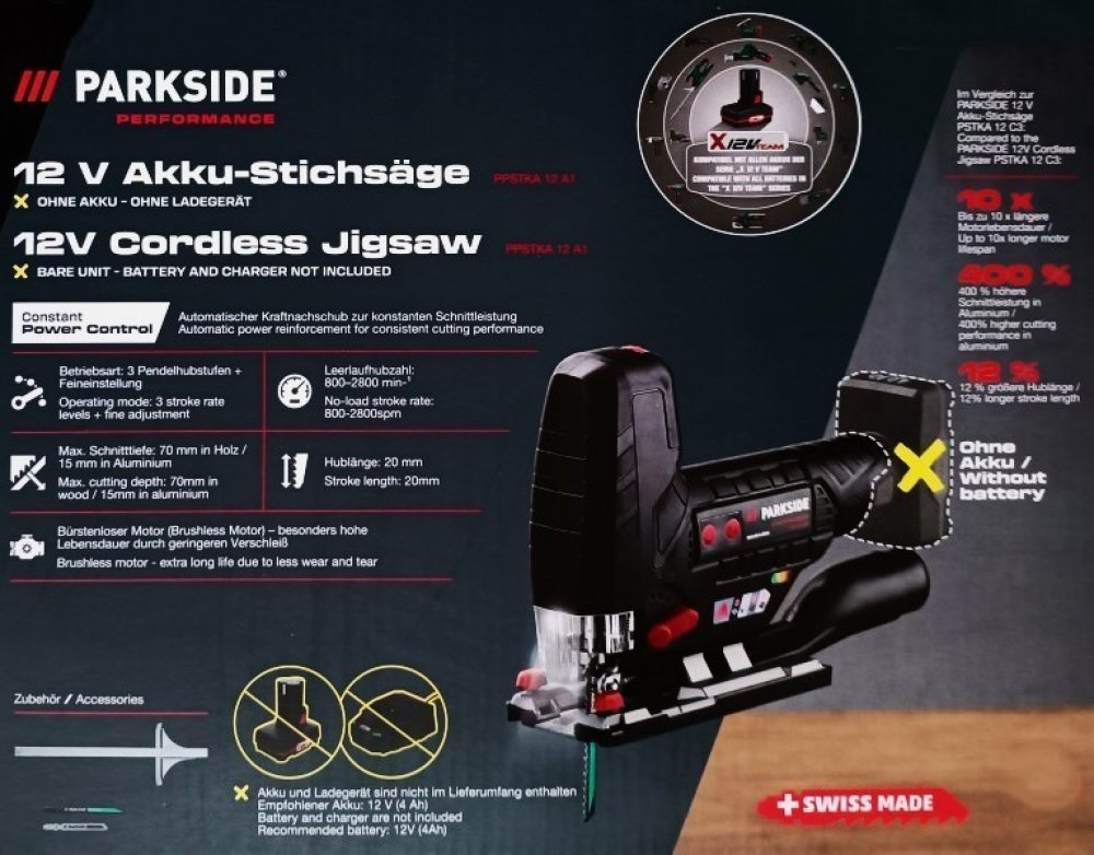 Přímočaré pily jsou mimořádně užitečné nástroje určené k provádění přesných řezů do materiálů, jako je dřevo a kov. Parkside PPSTKA 12 A1 bude spolehlivým společníkem při probíhajících rekonstrukcích a stavebních pracích. Součástí balení jsou 2 kvalitní pilové listy na dřevo a kov („Swiss Made“). Balení neobsahuje akumulátor a nabíječku.