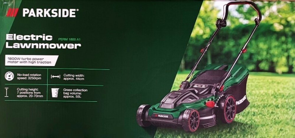 Parkside 1800 W 44 cm 16.7 kg elektrické rotační 55 l 1800 W 3250 ot/min 70 mm s plastovým košem