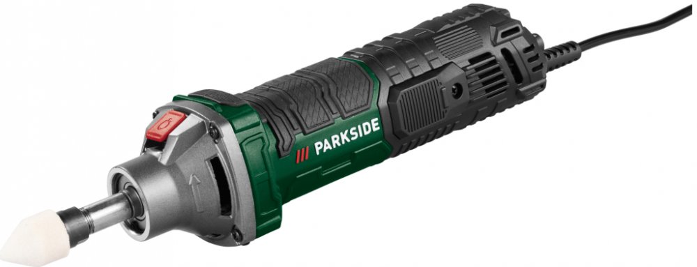 Parkside® Přímá bruska PGS 500 B2 Vlastnosti Univerzálně použitelná – od přesného jemného broušení až po výkonný brus Výkonný motor s plynule nastavitelnými otáčkami Ergonomický design s protiskluzovým držadlem s měkkým povrchem Jednoduchá výměna nástavce s aretací vřetena (Spindle Lock) Robustní kovové tělo převodovky Vhodná pro všechny běžné nástavce (např. příslušenství pro přímou brusku Pgsz 7...