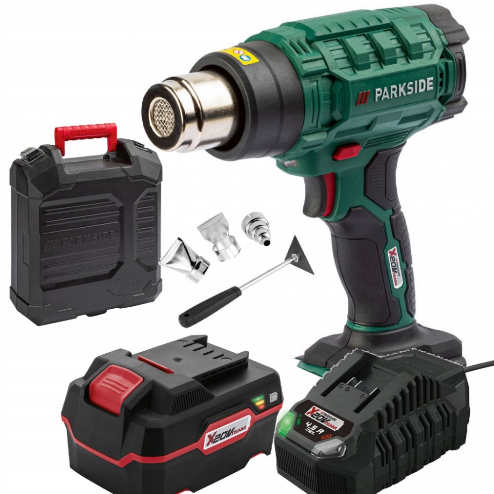 PARKSIDE Aku horkovzdušná pistole PHLGA 20-Li C2 – bez akumulátoru a nabíječky Univerzální nářadí na tvarování, zahřívání či odstraňování barev, laků a lepidla Robustní tělo a ergonomické držadlo s měkkým úchopem 2 volitelné maximální teplotní stupně (při nasazené redukční trysce): 250 °C / 550 °C Nastavitelný studený vzduch pro rychlé ochlazení Krátká doba ohřevu v průběhu 30 sekund na cca 350 °C (stupeň 2 s redukční tryskou) Ochrana proti přehřátí, monitorováním zkratu a ochranou proti hlubokému vybití Včetně praktického kufříku na uložení Dodané příslušenství: 1 redukční tryska, 1 odrazová tryska, 1 plochá tryska Výrobek kompatibilní se všemi akumulátory série „X 20 V Team“ Akumulátor a nabíječka nejsou součástí balení Doporučený akumulátor: 20 V (4 Ah) Technické údaje Doba provozu akumulátoru: 8 minut (2 Ah) / 16 minut (4 Ah) Rozměry cca 19,2 x 7 x 20,9 cm Hmotnost cca 507 g