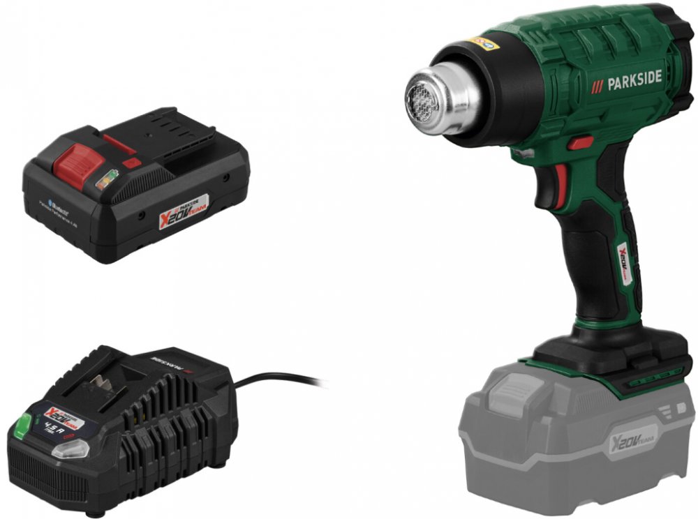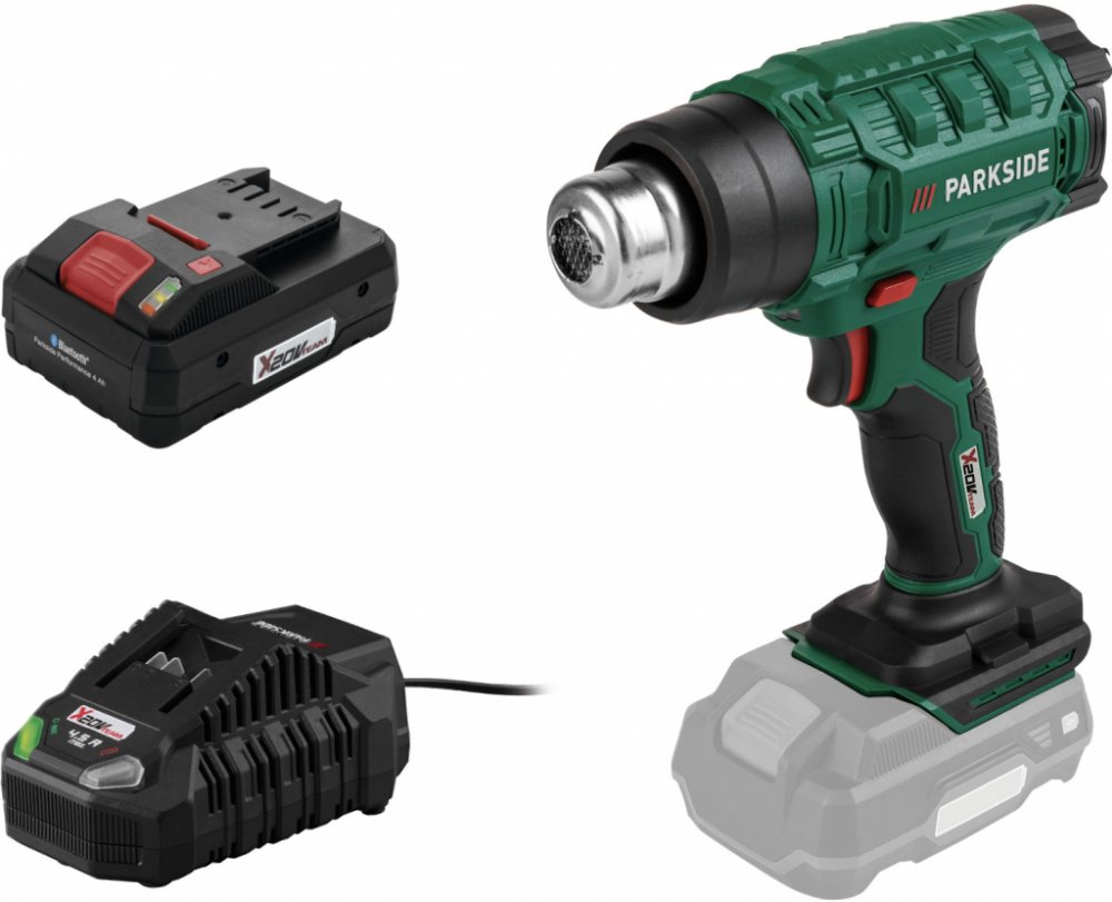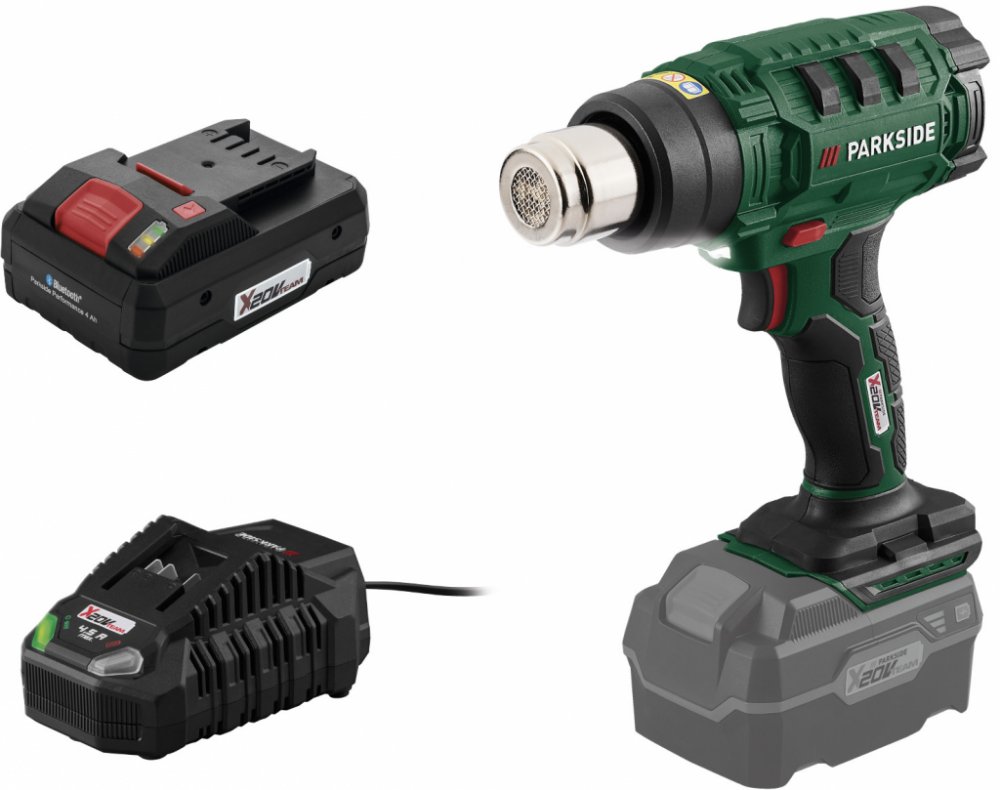 Parkside® Aku horkovzdušná pistole Phlga 20-Li C2, Smart 4 Ah Parkside® Aku horkovzdušná pistole Phlga 20-Li C2 Univerzální nářadí na tvarování; zahřívání či odstraňování barev, laků a lepidla Robustní tělo a ergonomické držadlo s měkkým úchopem 2 volitelné maximální teplotní stupně (při nasazené redukční trysce) Nastavitelný studený vzduch pro rychlé ochlazení Krátká doba ohřevu v průběhu 30 seku...
