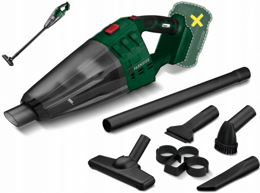PARKSIDE Aku ruční vysavač PHSSA 20-Li B1 – bez akumulátoru a nabíječky Pro rychlé a pohodlné čištění Odstraní bez námahy suchou i mokrou špínu Kompaktní design s ergonomickým držadlem a protiskluzovým měkkým povrchem Systém 4 hubic (univerzální / mokré vysávání / štěrbinová / kartáčová) Stisknutím knoflíku odnímatelná záchytná nádoba o objemu 0,65 l (brutto), s pratelným lamelovým jemným filtrem ...