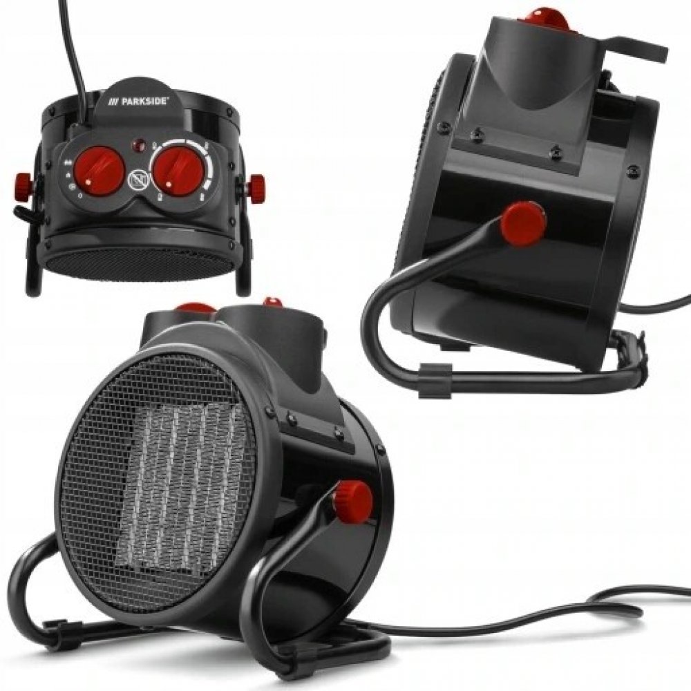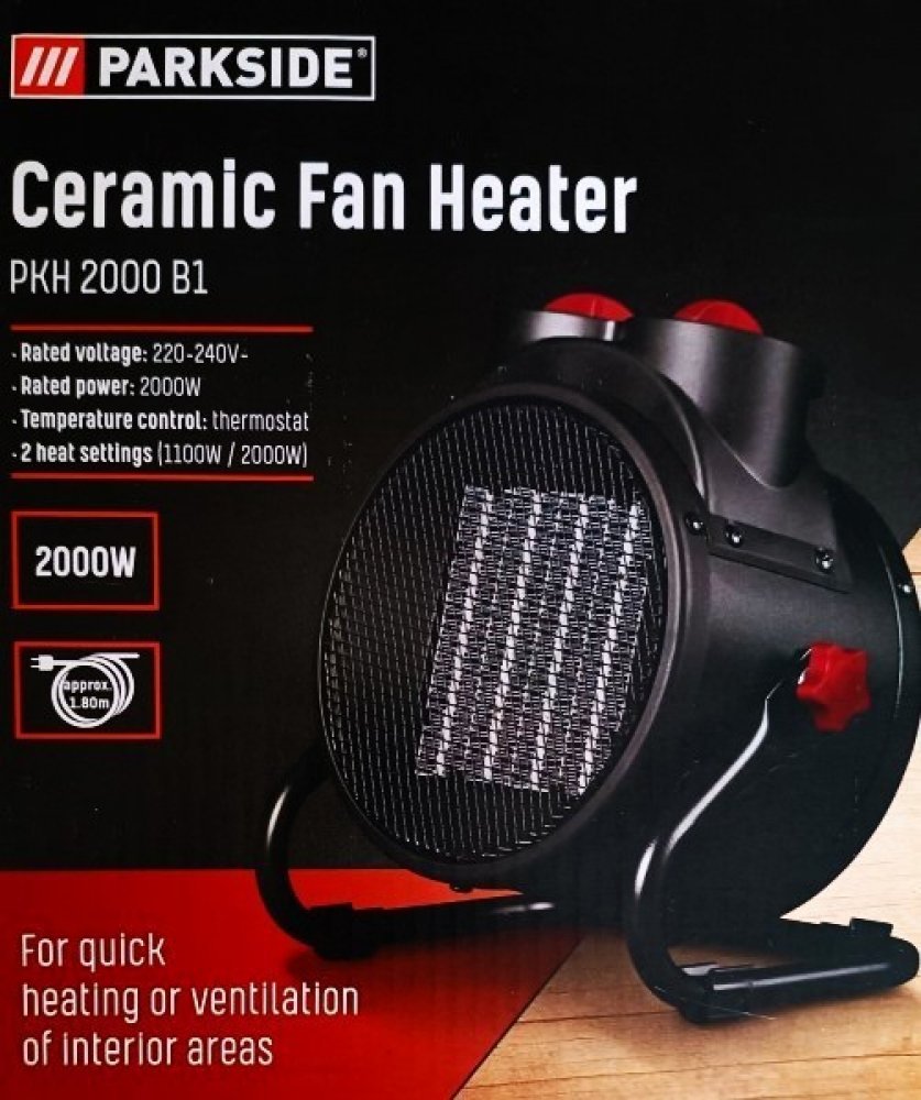 PARKSIDE Keramický topný ventilátor PKH 2000 B1 Rychlé vytápění nebo vyvětrání vnitřních místností Kompaktní elektrický ventilátor s výkonným PTC topným tělesem s dlouhou životností Nastavitelný termostat se 2 stupni vytápění (1100 / 2000 W) Bezpečný provoz díky ochraně proti přehřátí s automatickým vypnutím Lze použít také jako ventilátor Robustní tělo s ochrannou mřížkou Stabilní stojan s držadl...