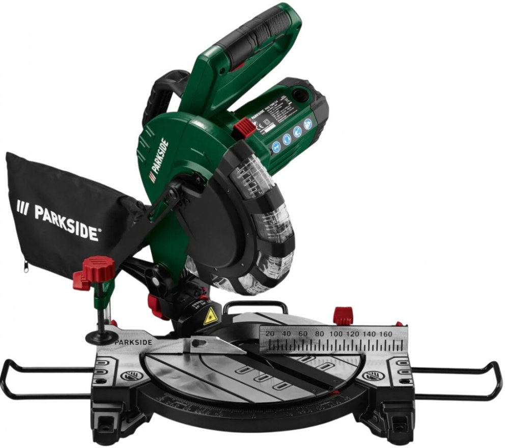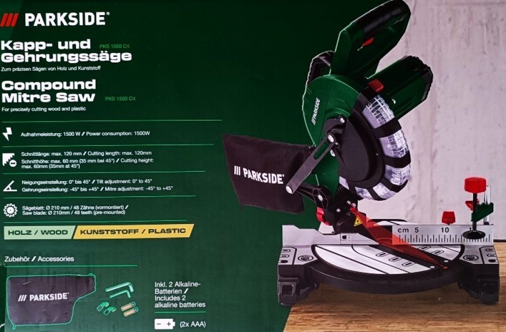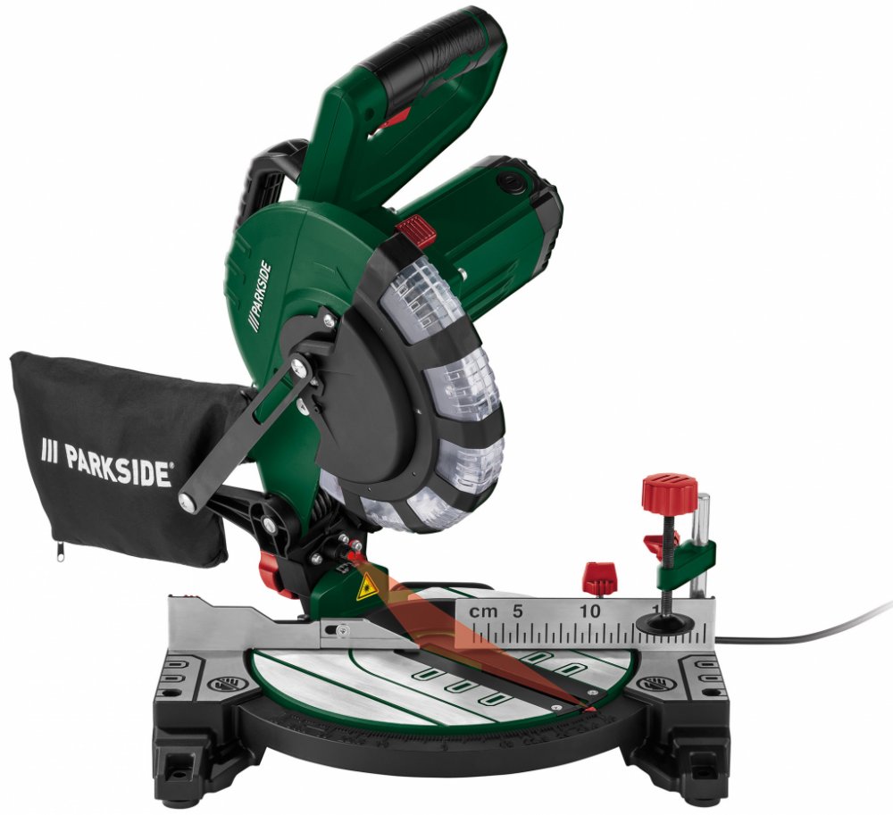 Parkside® Kapovací a pokosová pila PKS 1500 C4 Na přesné řezání dřeva a plastu Laser pro vysokou přesnost řezu Plynule výkyvná hlava pily Pokos nastavitelný plynule nebo s fixačními úhly Upínací zařízení a boční odkládací držáky pro uchycení obrobku Kompaktní tvar s praktickým držadlem Snadno připevnitelný sáček na prach Lze připojit i externí odsávání prachu Vhodná pro montáž na pracovní stůl upevňovací materiál není součástí balení Dodané příslušenství: 1x záchytný sáček na prach 1x nástroj pro výměnu pilových kotoučů 1x nástroj pro nastavení dorazu obrobku 2x náhradní uhlíkový kartáč 2x alkalická baterie pro laser Technické údaje Příkon: 1 500 W Otáčky naprázdno: 4 900 min -1 Nastavení sklonu: 0° až 45° Nastavení pokosu: -45° až +45° Délka řezu: max. 120 mm Výška řezu: max. 60 mm 35 mm při 45° Pilový kotouč: Ø 210 mm / 48 zubů předmontovaný Zobrazení linie řezu: laser Rozměry cca 40,5 x 38 x 30 cm bez příslušenství; hlava stroje ve spodní poloze cca 40,5 x 38 x 47 cm bez příslušenství; hlava stroje v horní poloze Délka síťového kabelu: cca 2 m Hmotnost cca 5,8 kg bez příslušenství