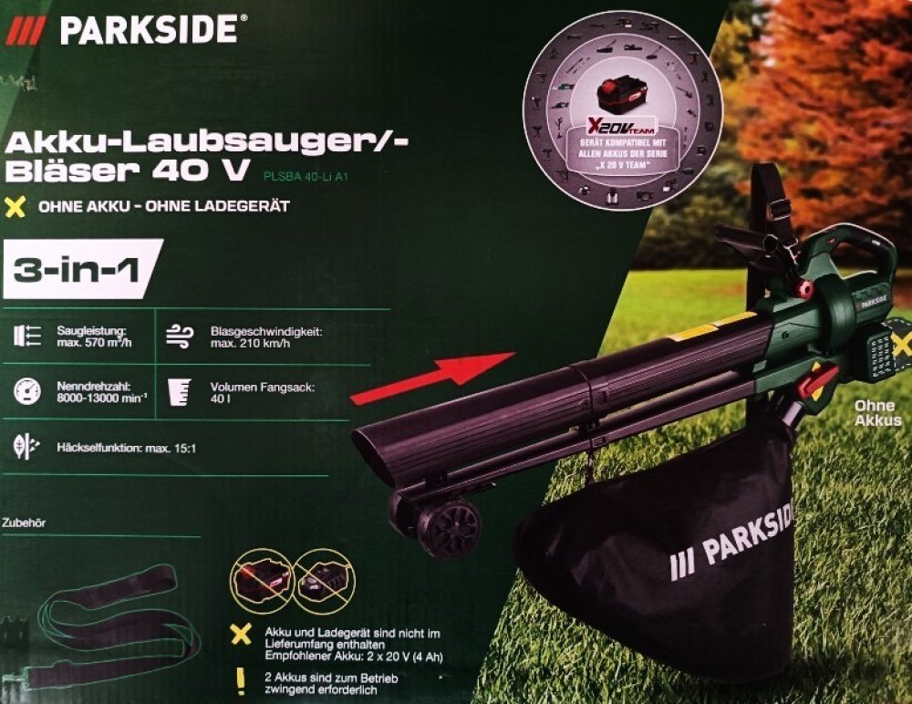 Parkside AKU vysavač / foukač listí PLSBA 40-Li A1 nabízí neuvěřitelnou hodnotu za skvělou cenu. S dvouletou zárukou a možností provozu s dvěma typy akumulátorů (2x 2Ah pro 10/15 minut a 2x 4Ah pro 20/30 minut v režimu vysávání/foukání) je tento model spolehlivým pomocníkem pro každou zahradu.