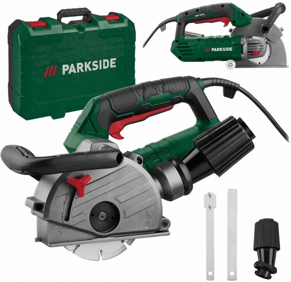 Parkside® Drážkovací fréza do zdiva Pmnf 1500 B2 Určená na vytváření drážek v betonu, cihelném zdivu, omítce nebo sádrokartonu 2 diamantové řezné kotouče s vysokou rychlostí řezání Elektronicky řízený motor s jemným rozběhem a dodáním výkonu při zatížení Automatická ochrana proti přetížení a bezpečnostní spínač Připojení k externímu odsávání prachu Snadná výměna kotoučů pomocí aretace vřetena Spin...