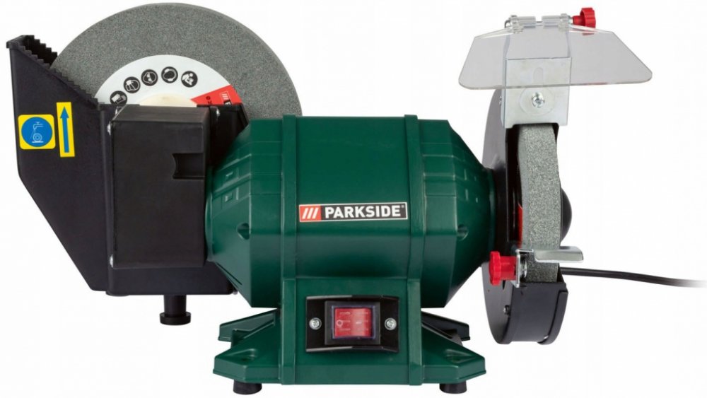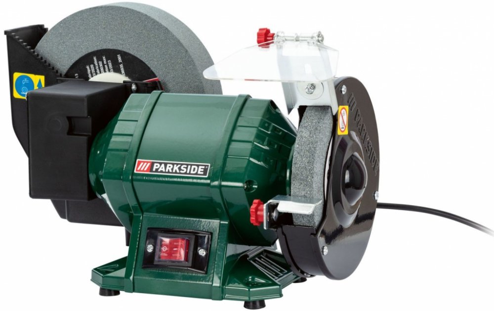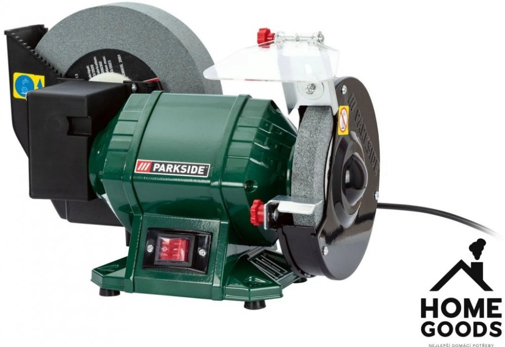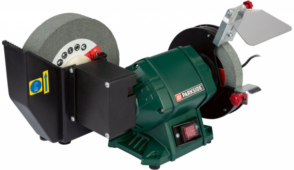 Tato bruska je vybavena pomalu běžícím kotoučem na mokré broušení s nerezavějící nádržkou na vodu, což je ideální pro jemné a přesné úpravy. Rychle běžící kotouč na suché broušení je opatřen nastavitelným krytem proti jiskrám, což zvyšuje bezpečnost při práci. Díky vypínači chráněnému proti stříkající vodě je bruska bezpečná i v náročnějších podmínkách.