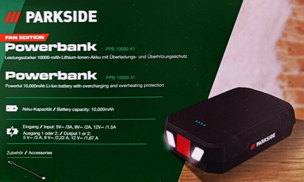;} Parkside® Powerbanka PPB 10000 A1, 10 000 mAh, Usb-C PD, svítilna Už nikdy vybitá baterie na cestách! S powerbankou Parkside® 10 000 mAh máte spolehlivý zdroj energie vždy po ruce. Své smartphony, tablety nebo jiná zařízení s USB připojením nabijete rychle a efektivně – ať jste kdekoli. Díky kompaktnímu designu se vejde do každé tašky a je ideálním společníkem na cesty, výlety nebo dlouhé pracovní dny. Technologie Power Delivery zajišťuje extra rychlé nabíjení; takže vaše zařízení mohou být během chvilky opět připravena k použití. Vlastnosti Výkonný Li-Ion akumulátor s kapacitou 10 000 mAh a s ochranou proti přebití a přehřátí Usb-C porty s funkcí Power Delivery (Pd*) 3.0 pro superrychlé nabíjení Čtyřstupňový LED displej pro zobrazení kapacity baterie a stavu nabíjení 2x Usb-C port: 1x výstup; 1x vstup a výstup 2x LED světlo Korpus chráněný proti stříkající vodě (Ipx4) Včetně nabíjecího kabelu Usb-A na Usb-C s praktickým silikonovým páskem pro navíjení Celkový výkon: max. 15 W (5 V⎓ / 3 A) při současném nabíjení 2 zařízení Vstup: 5 V⎓ /3 A, 9 V⎓ /2 A, 12 V⎓ /1,5 A Výstup 1 nebo 2: 5 V⎓ /3 A, 9 V⎓ /2,22 A, 12 V⎓ /1,67 A Záruka: 3 roky * Disponuje funkcí USB Power Delivery (Pd) – superrychlá technologie nabíjení; která optimalizuje nabíjení vašeho mobilního zařízení. Tato technologie potřebuje jen 30 minut pro efektivní nabití akumulátoru z 0 na 50 %. Vyžaduje se zařízení kompatibilní s technologií Power Delivery (Pd). Kompatibilní zařízení: tablety: iPad Pro (až do 13") / chytré telefony: iPhone (do série 16), Samsung Galaxy (do série S24), Note (do série 21) Charakteristika produktu Typ produktu: powerbanka Kapacita: 10 000 mAh Rozhraní: Vstup: 1x Usb-C (PD 3.0, 18 W) Výstup: 2x Usb-C (PD 3.0, 18 W) Vybavení: 2x Led; dotykové tlačítko; Power Delivery 3.0 Oblast použití: nabíjení mobilních zařízení Hmotnost: cca 220 g Barva: černá Obsah balení: 1x powerbanka, 1x nabíjecí kabel Usb-A na Usb-C (cca 15 cm), 1x návod k použití