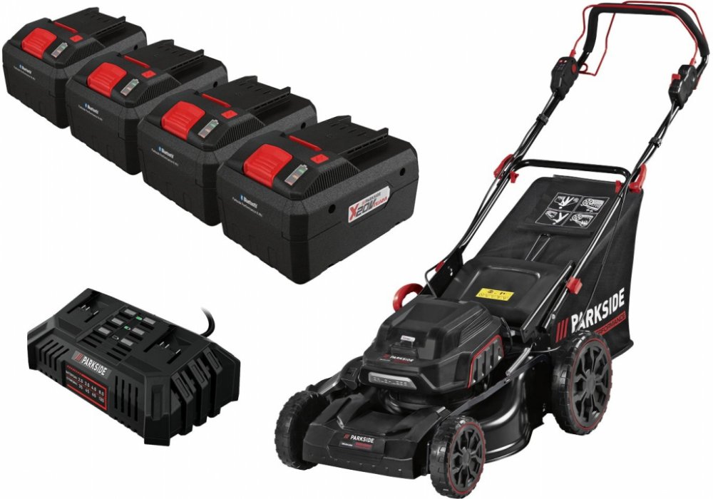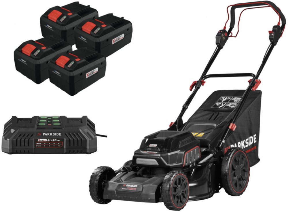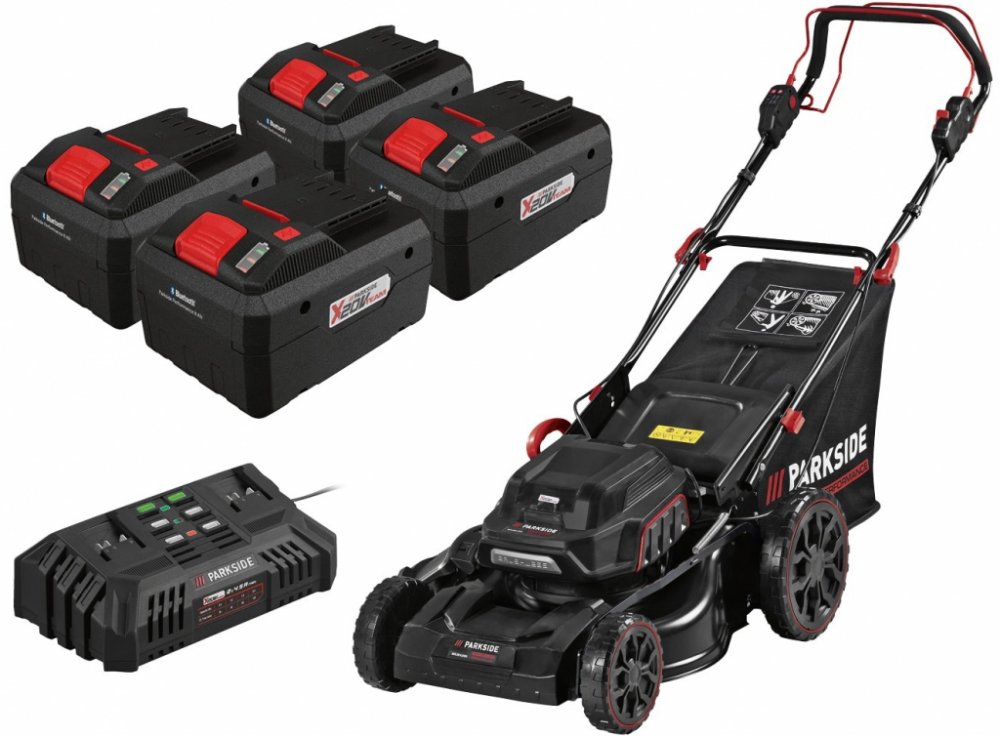 PARKSIDE PERFORMANCE® Aku sekačka na trávu PPRMA 40-Li A1, 4x Smart 8 Ah Sada se skládá z aku sekačky na trávu PPRMA 40-Li A1, 4 smart akumulátorů 8 Ah PAPS 208 A1 a dvojité rychlonabíječky PDSLG 20 B1 Kompatibilní se všemi přístroji série „PARKSIDE X 20 V Team“ Aku sekačka na trávu PPRMA 40-Li A1 Snadné sečení, sbírání nebo mulčování – ideální také pro středně velké trávníky Delší sečení díky p...