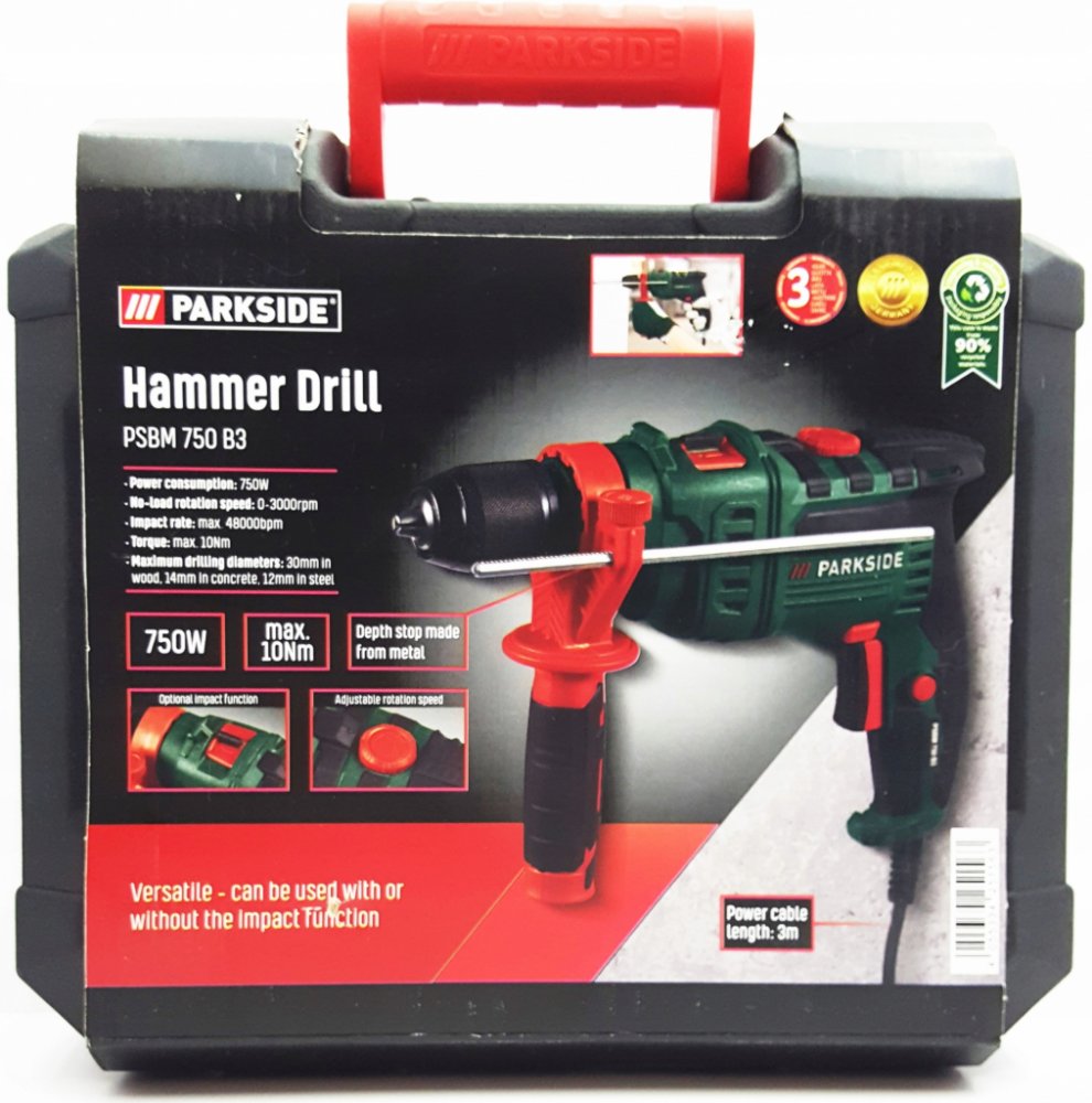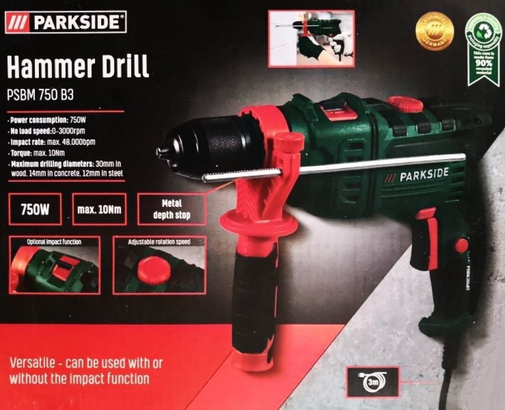 PARKSIDE Příklepová vrtačka PSBM 750 B3, 750 WHlavní vlastnosti: