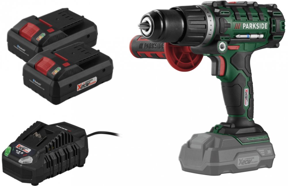 Parkside® Aku příklepová vrtačka Psbsa 20-Li E4, 2x Smart 4 Ah Parkside® Aku příklepová vrtačka Psbsa 20-Li E4 Vlastnosti 3 funkce: vrtání; příklepové vrtání; šroubování Výkonný motor s 2stupňovou převodovkou a zapínatelným příklepovým mechanismem Rychloupínací sklíčidlo z kovu s radiálním zajištěním Vypínač s plynulou regulací otáček a rychlým zastavením Automatická aretace vřetena Spindle Lock I...
