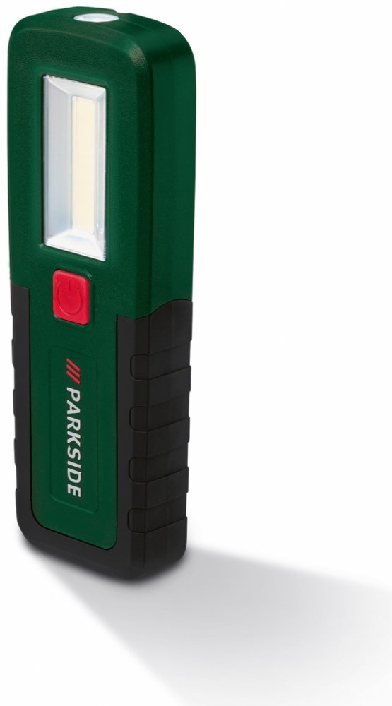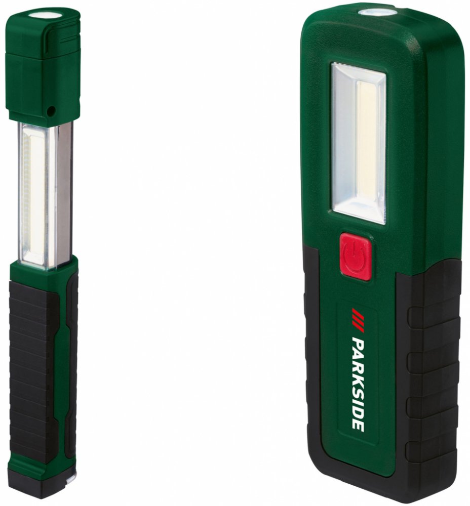 PARKSIDE Aku LED svítilna PSDD 2000 A2 Výkonné COB LED s plynule nastavitelnou intenzitou osvětlení Výklopná hlava svítidla Výkyvný magnetický podstavec s kulovým kloubem a závěsným držákem Robustní tělo s držadlem s měkkým povrchem a ukazatelem stavu nabití akumulátoru Chráněná USB nabíjecí zásuvka, včetně USB kabelu (typ C) LED diody není možné vyměnit Technické údaje Vstupní napětí USB: 5 V⎓ 1 A Max. výstupní výkon LED: cca 7 W Li-Ion akumulátor: 3,7 V (2 000 mAh) Max. světelný tok: 600 lm Teplota světla: cca 6 500 K Doba svícení: cca 1 hod. (při max. intenzitě osvětlení) Materiál Plast, kov Rozměry cca 3,5 x 3,5 x 39,5 cm Délka USB kabelu: cca 90 cm Hmotnost cca 205 g