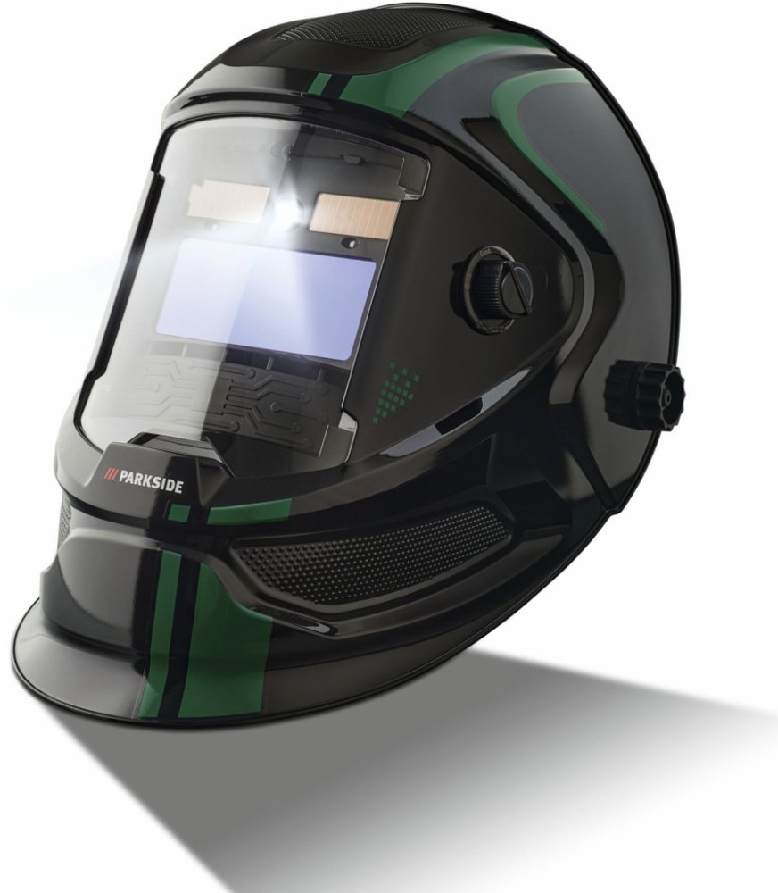 Parkside® Samozatmívací svářečská kukla s LED osvětlením Pshl 2 D1 Integrované LED osvětlení pracovního prostoru – samostatně zapínatelné Filtr True color pro realistické zobrazení barev s vysokým pohodlím při práci Vhodná pro všechny běžné svařovací postupy Automatické ztmavení při zažehnutí svařovacího oblouku Senzorem řízený systém s velmi krátkou reakční dobou (Din EN 379, třída 1.1.1.2.) Automaticky řízené stínění – pro pohodlnou práci bez přerušení Variabilně nastavitelná citlivost a doba zesvětlení Automatické zesvětlení po ukončení sváření Plynule nastavitelný ochranný stupeň DIN pomocí bočního nastavovacího kolečka Nastavitelná také pro létající jiskry při broušení Extra nízká hmotnost a nastavitelný hlavový oblouk Vhodná pro teplotu prostředí od –5 do 55 °C Použití: vhodná pro všechny běžné svařovací postupy Ochrana Uv/Ir: DIN 16 Včetně 2 baterií (1,5 V / Lr03, Aaa) Nastavitelný ochranný stupeň Din: 5–9 / 9–13 Technické údaje Rychlost zatemnění: 0,0004 s (podle EN 379) Rozměry Průhled: cca 9,2 x 4,2 cm Černá varianta: cca 31,7 x 24,4 x 21,2 cm Varianta plameny / černá: cca 33,7 x 25,4 x 21,3 cm Hmotnost Černá varianta: cca 520 g Varianta plameny / černá: cca 580 g