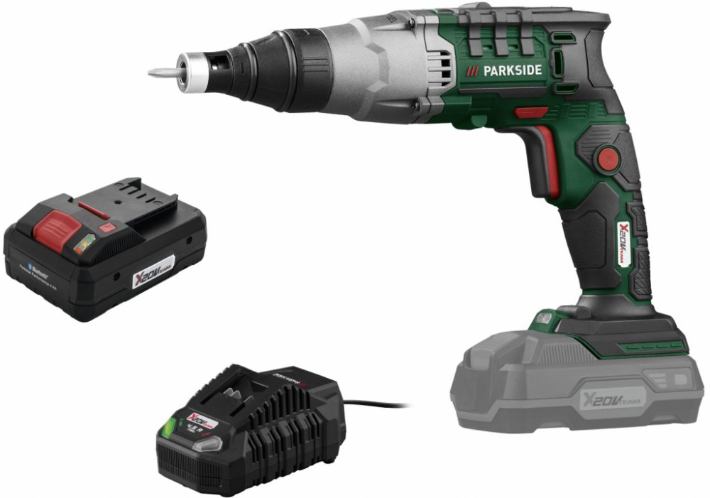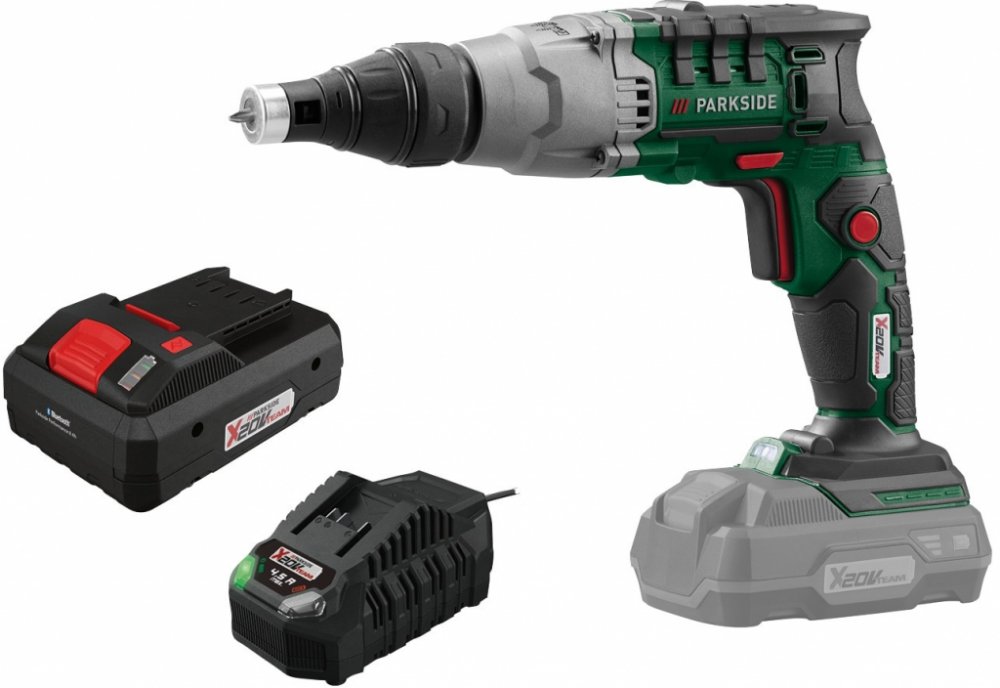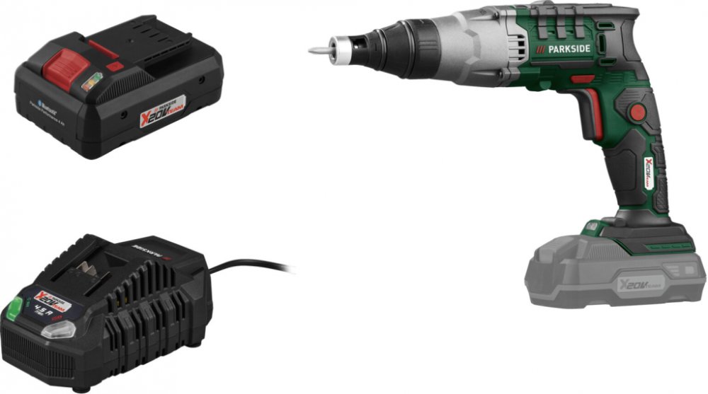 Parkside® Aku šroubovák na sádrokarton Ptbsa 20-Li A1, Smart 4 Ah Parkside® Aku šroubovák na sádrokarton Ptbsa 20-Li A1 Rychlý a účinný – vhodný pro prvky suché výstavby jako sádrokartonové nebo polystyrenové desky Lze rozšířit zásobníkovým nástavcem Parkside PMA 55 A1 pro ještě vyšší účinnost Zásobníkový nástavec s beznástrojovou montáží Plynule nastavitelné otáčky s funkcí rychlého zastavení – v...