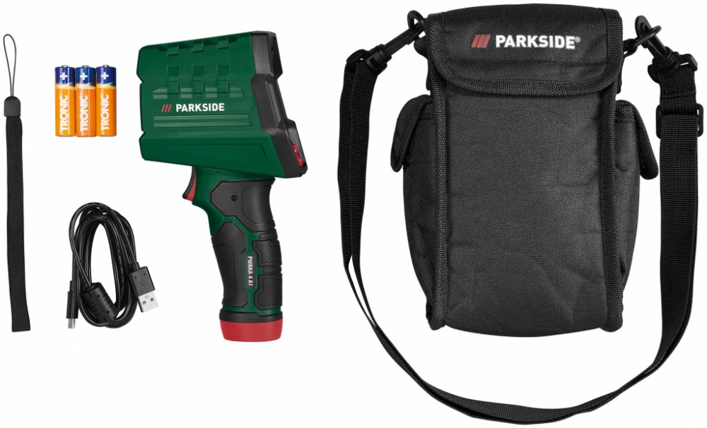 Parkside® Termokamera Pwbka 4 A1 Ideální pro kontrolu izolačních a topných systémů; monitorování tepelného toku a vyhledávání přehřátých dílů a tepelných mostů 2;8″ TFT LCD displej a automatická detekce horkých/studených míst Vhodná také pro pořizování a přehrávání termovizních fotografií a videí Zobrazení snímků ve 4 barevných paletách: Iron Red (červená) / barvy RGB / stupně šedi (teplá bílá) / stupně šedi (teplá černá) Nastavitelná emisivita pro přesnější měření různých povrchů 1024 měřicích bodů Ochrana proti stříkající vodě Ip54 Integrovaný ¼″ závit pro použití se stativem (stativ není součástí balení) Usb-C připojení pro přenos dat V praktické tašce na uložení Dodané příslušenství: 1x úložná taška 1x popruh na přenášení 1x Usb-C kabel (cca 1,5 m) 3x 1,5 V alkalická baterie AAA Technické údaje Rozsah měření teploty: -20 až 1000 °C Základní přesnost: ± 3 % / ± 3 °C Rozlišení displeje: 240 x 320 pixelů Zorné pole: 33° x 33° Rozměry cca 21,3 x 6,9 x 10,9 cm Hmotnost cca 252 g (bez baterií)