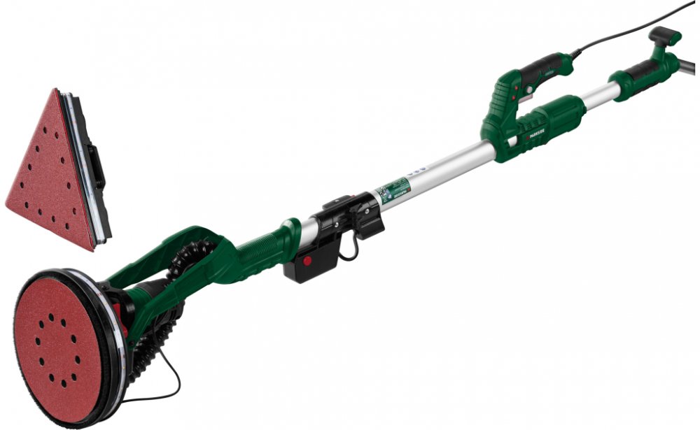 Parkside® Nástěnná a stropní bruska Pwds 920 D4 Vlastnosti Výkonný 710W motor s nastavitelnými otáčkami a kmity pro optimální výsledky broušení Hliníková teleskopická tyč v rozsahu 120 až 170 cm Připojení k externímu odsávání prachu – včetně prodloužitelné hadice Brusná hlava s kardanovým kloubem pro optimální přilnavost ke stěně Teleskopická funkce usnadňuje přístup k těžko dostupným plochám 2 vy...