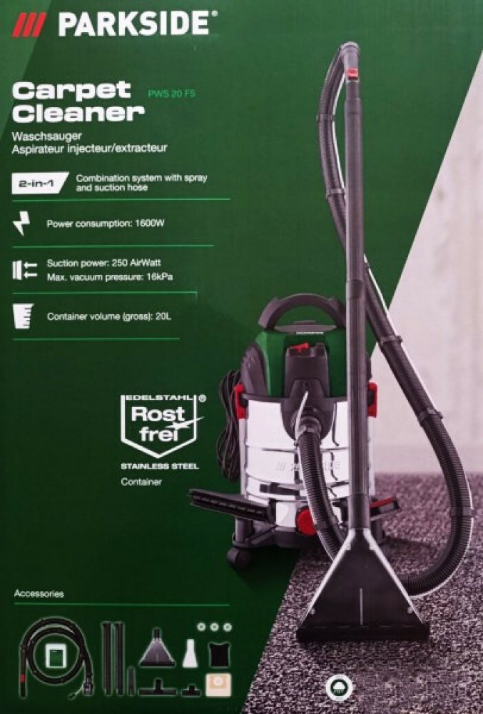 Parkside PWS 20 F5 je ideálním nástrojem pro udržování čistoty na jakémkoli místě. Díky kombinovanému systému stříkání a sání snadno vyčistíte koberce, koberečky, čalounění nábytku, autosedačky i koberečky. Díky možnosti práce za sucha i za mokra se vysavač skvěle hodí i do dílny, garáže nebo při čištění podlah po rekonstrukcích.