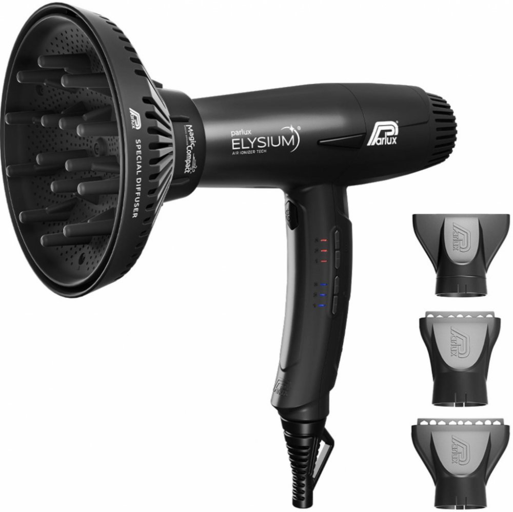 Profesionální fén Parlux Elysium Black Vás osloví nejen svým moderním designem, ale také svým výkonem a dokonalým vyvážením s nízkou hmotností a kompaktní velikostí. Fén disponuje digitálním mini-motorem s dlouhou životností, který i přes své malé rozměry dosahuje výkonu 2300 W s průtokem vzduchu 80 m3/h, zajišťuje tak rychlé a perfektní vysoušení vlasů stejně jako větší modely značky. Šetrnost vysoušení vlasů zajišťuje funkce ionizace Air Ionizer Tech, která vlasům dodává hydrataci, lesk, hedvábnou měkkost a eliminuje účinky statické elektřiny. Díky digitálním tlačítkům fén nabízí až 9 kombinací nastavení rychlosti a teploty vzduchu, snadno jej tak přizpůsobíte dle potřeb. O zvoleném nastavení informují LED diody u každého z tlačítek. Paměťová funkce si navíc zapamatuje poslední zvolené nastavení, používání fénu je tak ještě snazší. Nechybí zde ani samostatné tlačítko studeného vzduchu. Aby nedošlo k nechtěnému přenastavení zvoleného nastavení v průběhu používání fénu, posuvné tlačítko On/Off se zámkem na vnější straně rukojeti tlačítka uzamkne. Odnímatelný zadní kryt obsahuje houbičkový filtr, který lze snadno vyjmout a omýt nebo vyměnit, čímž se prodlužuje životnost fénu. Podstatně menší rozměry fénu, ergonomické tvarování a dokonalé vyvážení spolu s nízkou hmotností (400 g) zaručují snadnou manipulaci a nenáročnou práci. K tomu přispívá také 3,3 metrů dlouhý kabel s unikátní patentovaným systémem STC - kabel se otáčí o 360°, díky čemuž se nekroutí. Díky systému Anti-heating s konstrukcí s trojitou izolací a vzduchovou komorou navíc zůstává přední část těla fénu chladnější i při delším používání, což umožňuje volnost a bezpečnost uchopení fénu pro ještě lehčí manipulaci. Součástí balení jsou dvě nové vzduchové trysky AirFusion (91 mm a 71 mm) s upravenou konstrukcí pro rychlé a precizní vysušení vlasů, klasická vzduchová tryska Classic Slim (91 mm) a difuzér Magic Compact.Barva: lesklá černá (Black)Technologie: Ionizační funkce Air Ionizer Tech - fény s ionizační funkcí mají generátor, který produkuje miliony očisťujících negativních iontů což způsobuje, že vlasy zůstávají hydratované; hydratace zabraňuje krepatění vlasů, má regenerační účinky, zanechává vlasy jemné, lesklé, lehce rozčesatelné a zvětšuje jejich objemSTC systém (Special Twisting Cable) - systém, který umožňuje otáčení kabelu o 360°, díky čemuž se kabel nekroutí Systém Anti-Heating - zamezuje přehřívání přední částí fénu díky konstrukci s trojitou izolací a vzduchovou komorou, pro volnost a bezpečnost uchopení fénuVlastnosti: - profesionální fén na vlasy - lehký s optimální rovnováhou a ergonomií- elegantní moderní design- podstatně menší rozměry- digitální mini-motor s dlouhou životností- výkon až 2300 W- průtok vzduchu 80 m3/h- rychlé a perfektní vysoušení vlasů- digitální tlačítka na rukojeti fénu- zámek digitálních tlačítek- tlačítko studeného vzduchu- 3 možnosti nastavení rychlosti vzduchu- 3 možnosti nastavení teploty vzduchu- LED diody informující o zvoleném nastavení- paměťová funkce nastavení vzduchu- odnímatelný zadní kryt houbičkového filtru- antibakteriální povrch- otočný kabel o 360°- délka kabelu 3,3 mBalení obsahuje: - vzduchové trysky AirFusion (91 mm a 71 mm)- vzduchová tryska Classic Slim (91 mm)- difuzér Magic Compact- 2x náhradní houbičkový filtr
