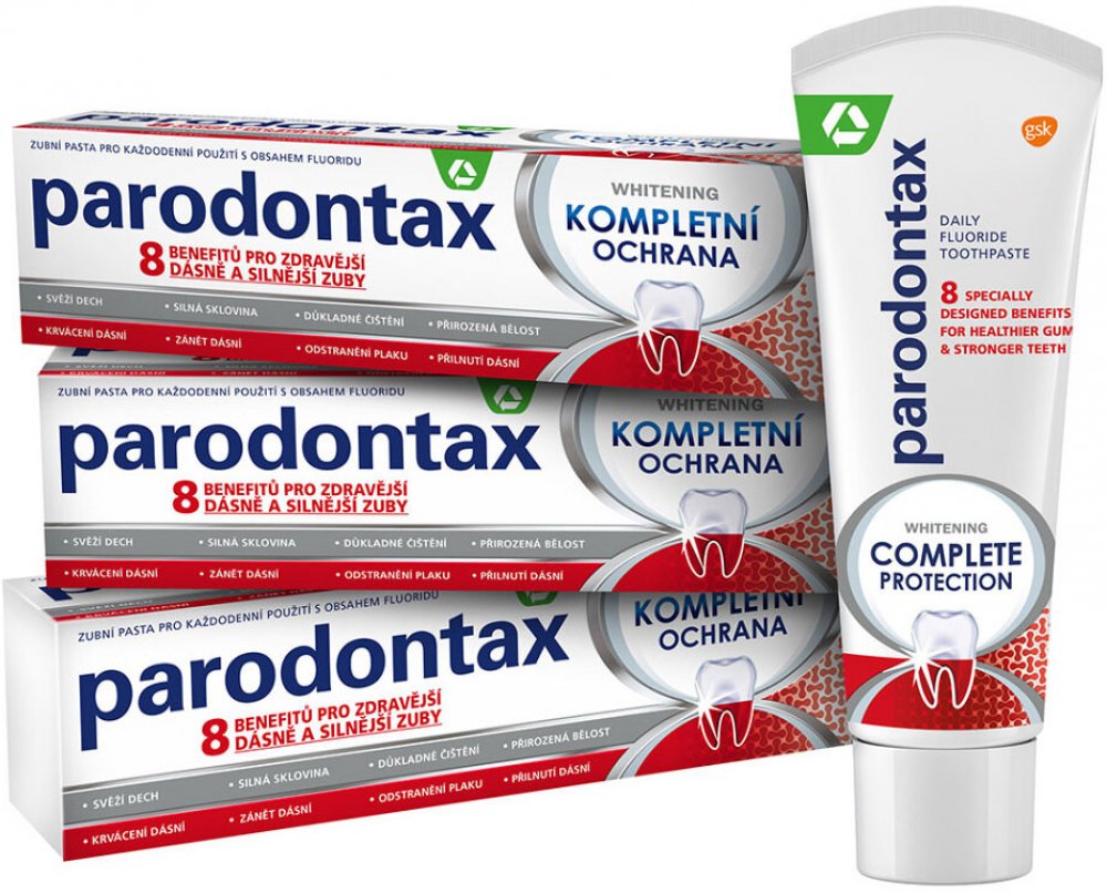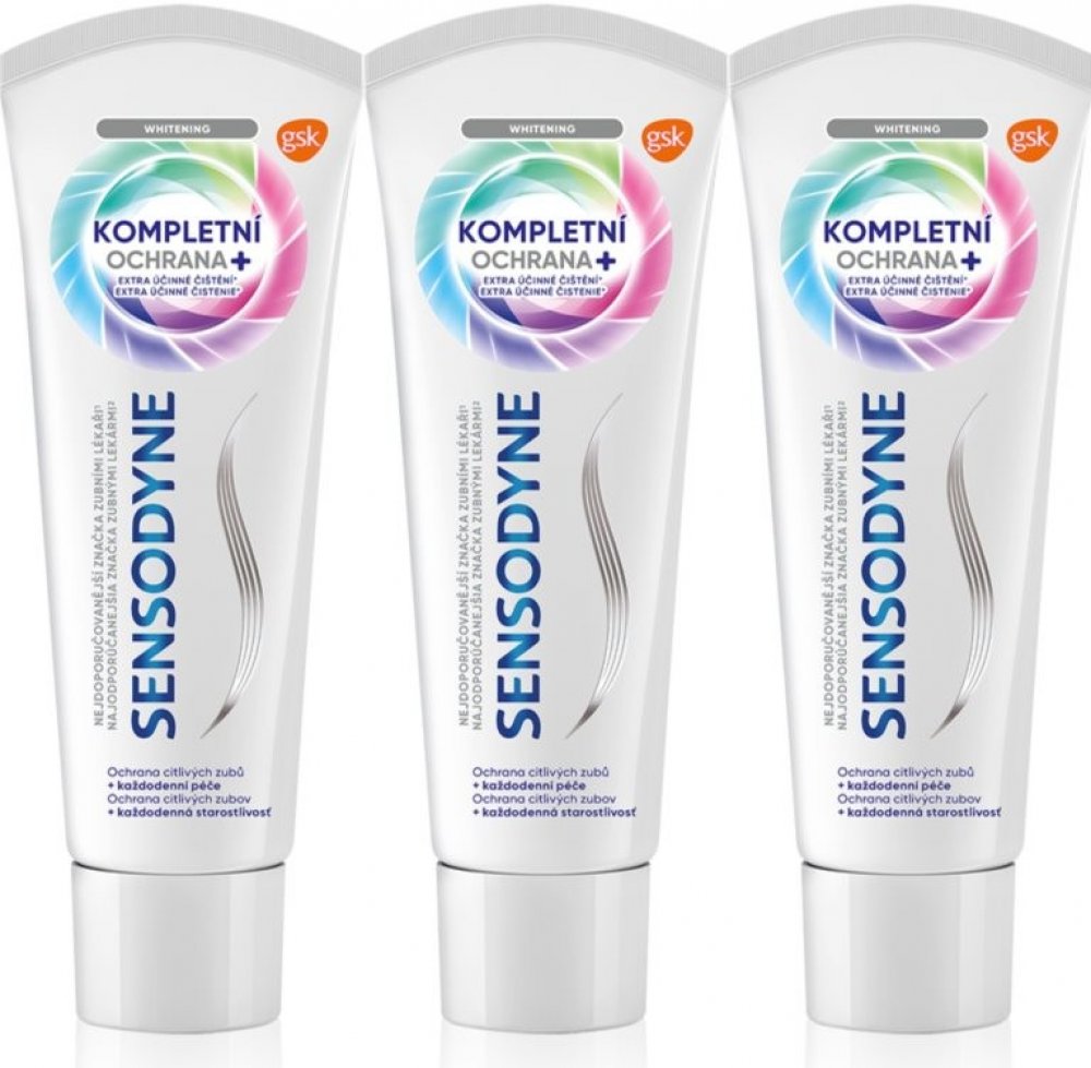 Sensodyne Complete Protection Whitening. Otevřete dveře do světa revoluční ústní hygieny se zubní pastou Sensodyne Complete Protection Whitening. Jedná se o první zubní pastu, která vám nabídne maximální účinnost při zachování jemného přístupu k citlivým zubům, a to díky technologii sférického oxidu křemičitého. Proč si zubní pastu Complete Protection Whitening oblíbíte? * uleví od bolesti citlivý